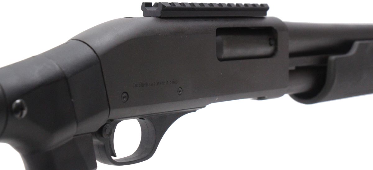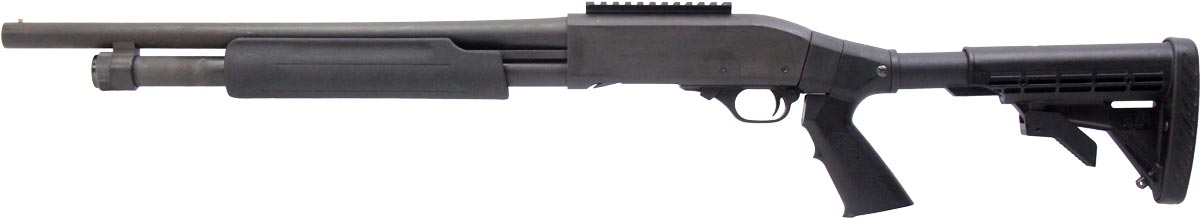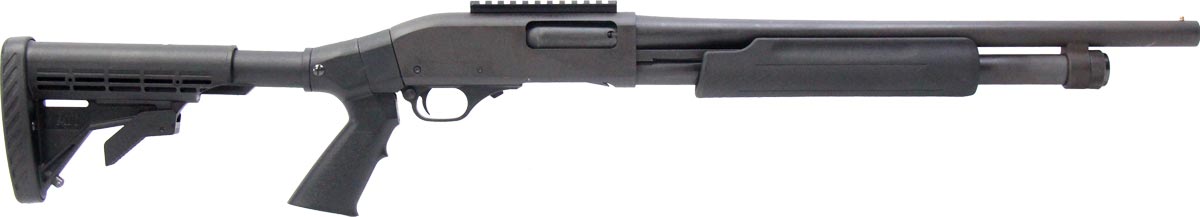 This is a used Hawk 981 shotgun chambered in 12 gauge. It features an 18.5-inch barrel, 3-inch chamber, fixed cylinder bore choke, picatinny optics rail, cross-bolt safety, pistol grip, and collapsible stock. Overall, this shotgun is in good condition with normal some finish wear on the receiver. This would be a good choice for home defense. Buy online today!