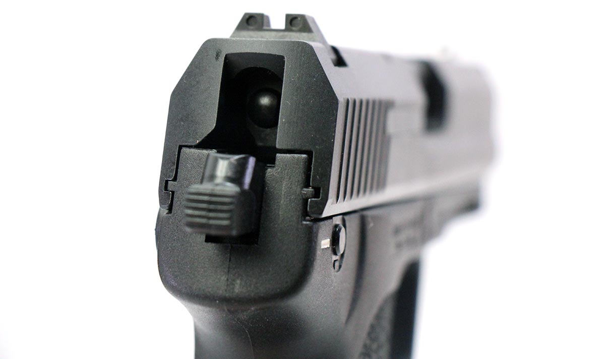 This is a used Heckler & Koch USP 45 V1 pistol chambered in 45 ACP. It features a 4.41-inch barrel, 12-round magazines, fixed sights, paddle magazine release, and thumb safety/decocker. Includes factory box, manual, and two magazines. Overall, this pistol is in good condition with normal use wear on the slide and barrel. This would be a good choice for home defense. Buy online today!