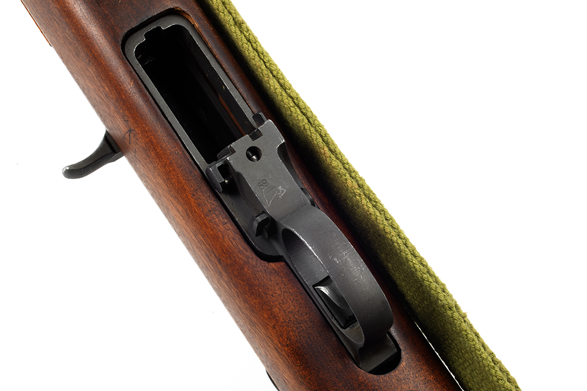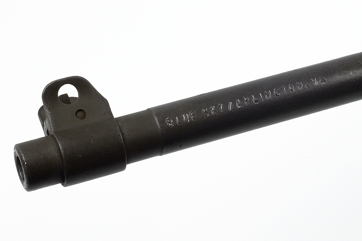This is post WW2 rebuilt Inland M1 Carbine chambered in 30 Carbine and imported by Blue Sky. It features an 18" barrel with Korean War era updated parts such as a bayonet lug and flip-lever safety, the stock is an unmarked low wood "potbelly" style that was probably made in the 1950's. The barrel and trigger housing are marked "W" (Winchester), the recoil plate is marked "PN" (National Postal Meter), the flat bolt is marked "N 14" (National Postal Meter), other parts are either unmarked or appear to be Inland. Based on serial range, the Inland receiver was manufactured in 1943. Includes three unmarked 15 round magazines and reproduction 1943 mag pouch. Overall condition is good with some minor wear, the bore is in nice shape with well-defined rifling. This would be a good choice for military surplus collectors. Buy online today!