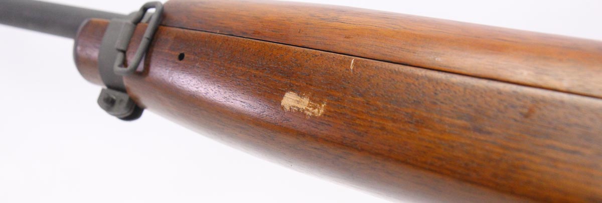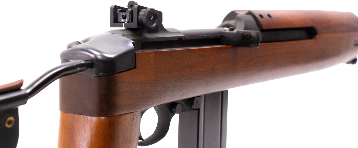 This is a used modern reproduction M1A1 Paratrooper Carbine manufactured by Inland MFG. It features an 18-inch barrel, 15-round magazine, folding stock, adjustable rear sight, wing protected front sight, and Parkerized finish. Overall, this carbine is in good condition with some handling wear on the stock and barrel. The bolt shows normal use wear. Bore condition is good with crisp rifling. This would be a good choice for recreational target shooting. Buy online today!
