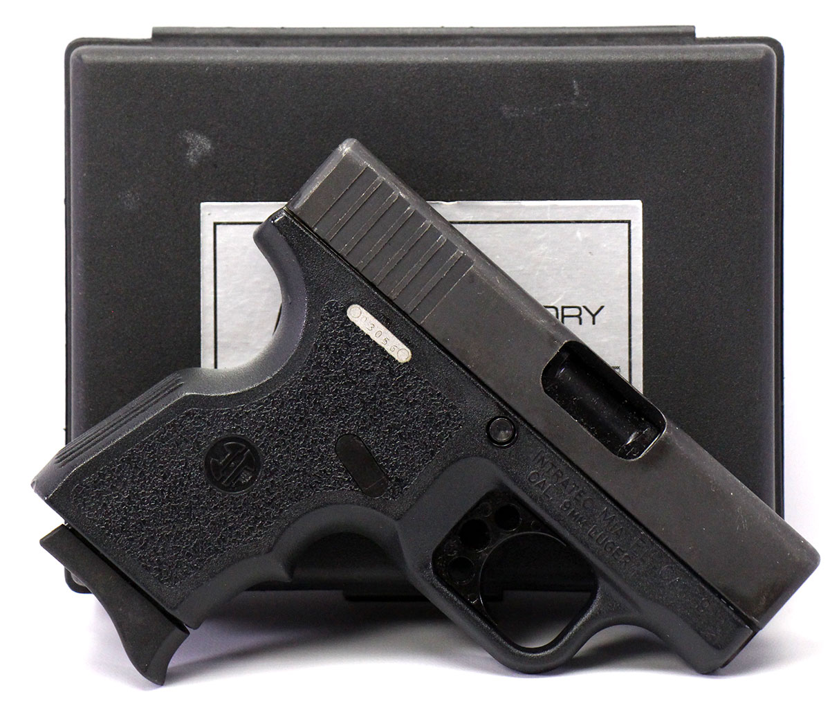 This is a used Intratec CAT-9 pistol chambered in 9mm. It features a 3-inch barrel, 7-round magazine, gutter sights, and polymer frame. Includes factory box and instruction manual. Overall, this Intratec is in good condition with normal wear on the slide and frame. This would be a good choice for concealed carry. Buy online today!