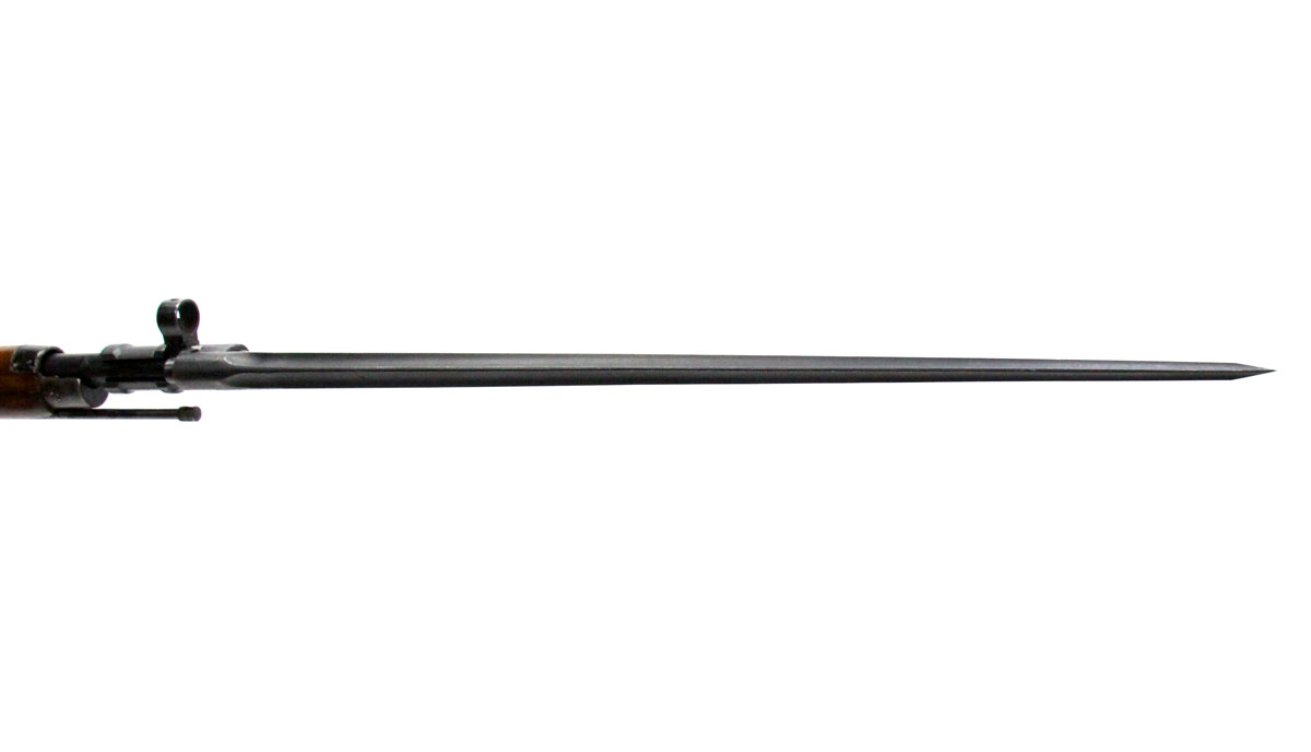 This is a WW2 Mosin Nagant M91/30 bolt action rifle chambered in 7.62x54R. It features a 30-inch barrel, 5-round capacity, tangent rear sight, hooded front sight, canvas sling, bayonet, and cleaning rod. Overall, this Mosin is in good condition with normal age-related finish wear throughout the barrel and receiver. The receiver features a 1943 date and an Izhevsk arsenal stamp. Excluding the bayonet, all serial numbers match and the receiver has PW Arms import marks. The bore is dark with strong rifling. This would be a good choice for military surplus collectors. Buy online today!