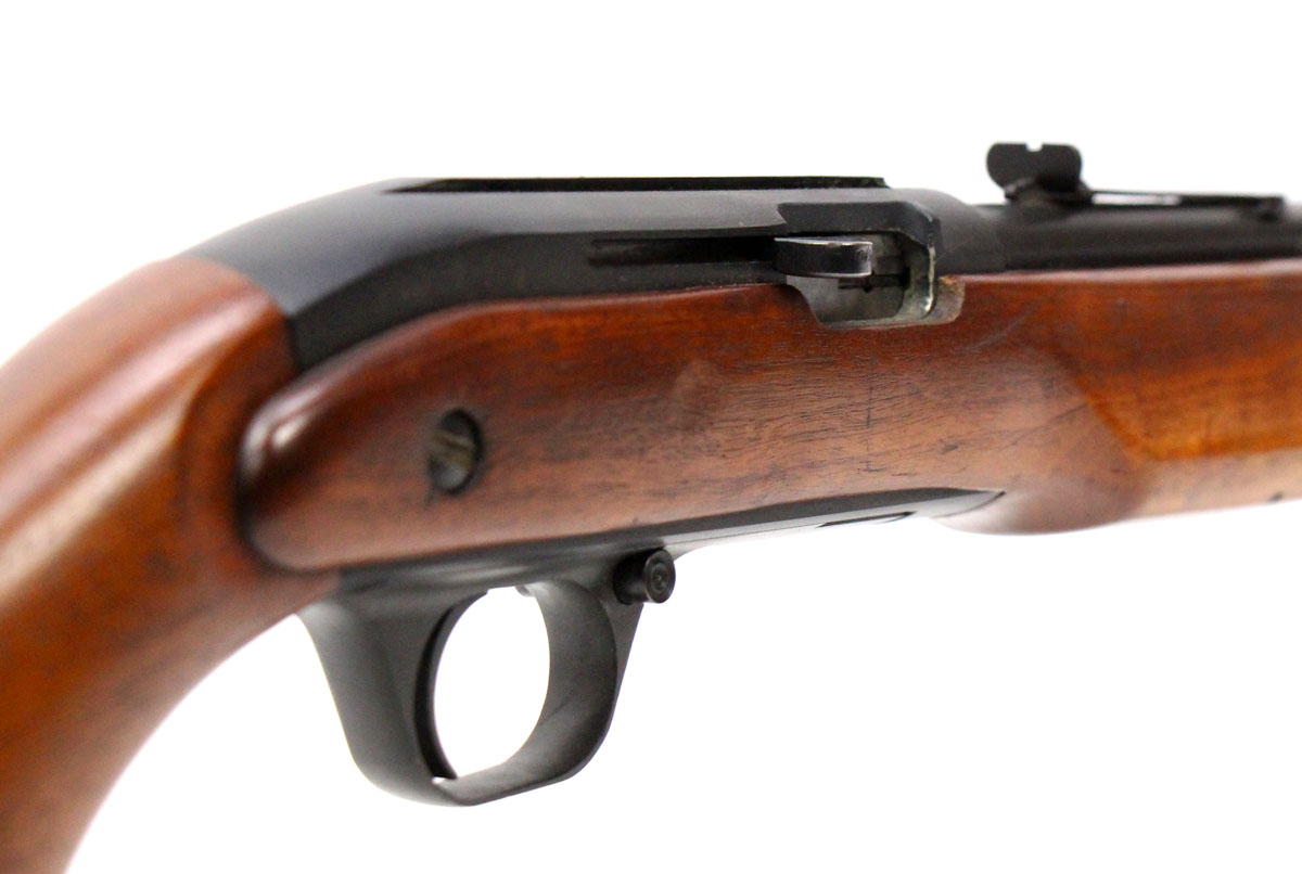 This is a used J.C. Higgins Model 30 rifle chambered in 22 Long Rifle. It features a 24-inch barrel, 15-round magazine tube, grooved receiver rail, wood stock, retractable sling, and blued finish. Overall, this J.C. Higgins is in good condition with handling wear on the stock. The barrel has freckling throughout the finish. Bore condition is good with crisp rifling. This would be a good choice for small game hunting. Buy online today!