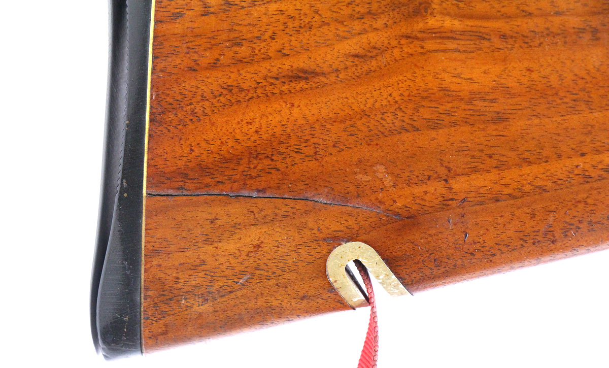 This is a vintage J.C. Higgins Model 30 rifle chambered in 22 Long Rifle. It features a 24-inch barrel, 15-round magazine tube, J.C. Higgins rifleman 4X scope, wood stock, sling, and blued finish. Overall, this J.C. Higgins is in good condition with handling wear on the stock. The barrel has freckling throughout the finish. The receiver, scope, and bottom metal are marked "JFM". The stock has a crack toward the toe Bore condition is good with crisp rifling. This would be a good choice for small game hunting. Buy online today!