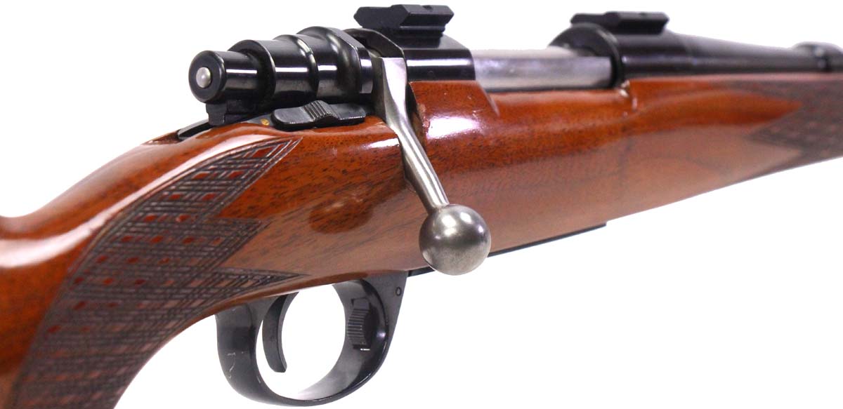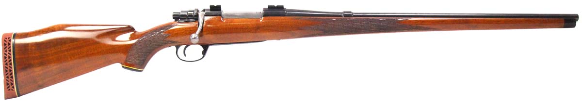 This is a used J.C. Higgins Model 51-L rifle chambered in 30-06. It features a 24-inch barrel, 5-round hinged floorplate magazine, two-piece scope base, claw extractor, full-length Mannlicher stock, and blued finish. Overall, this rifle is in good condition with some handling wear on the stock. Bore condition is good with crisp rifling. This would be a good choice for big game hunting. Buy online today!