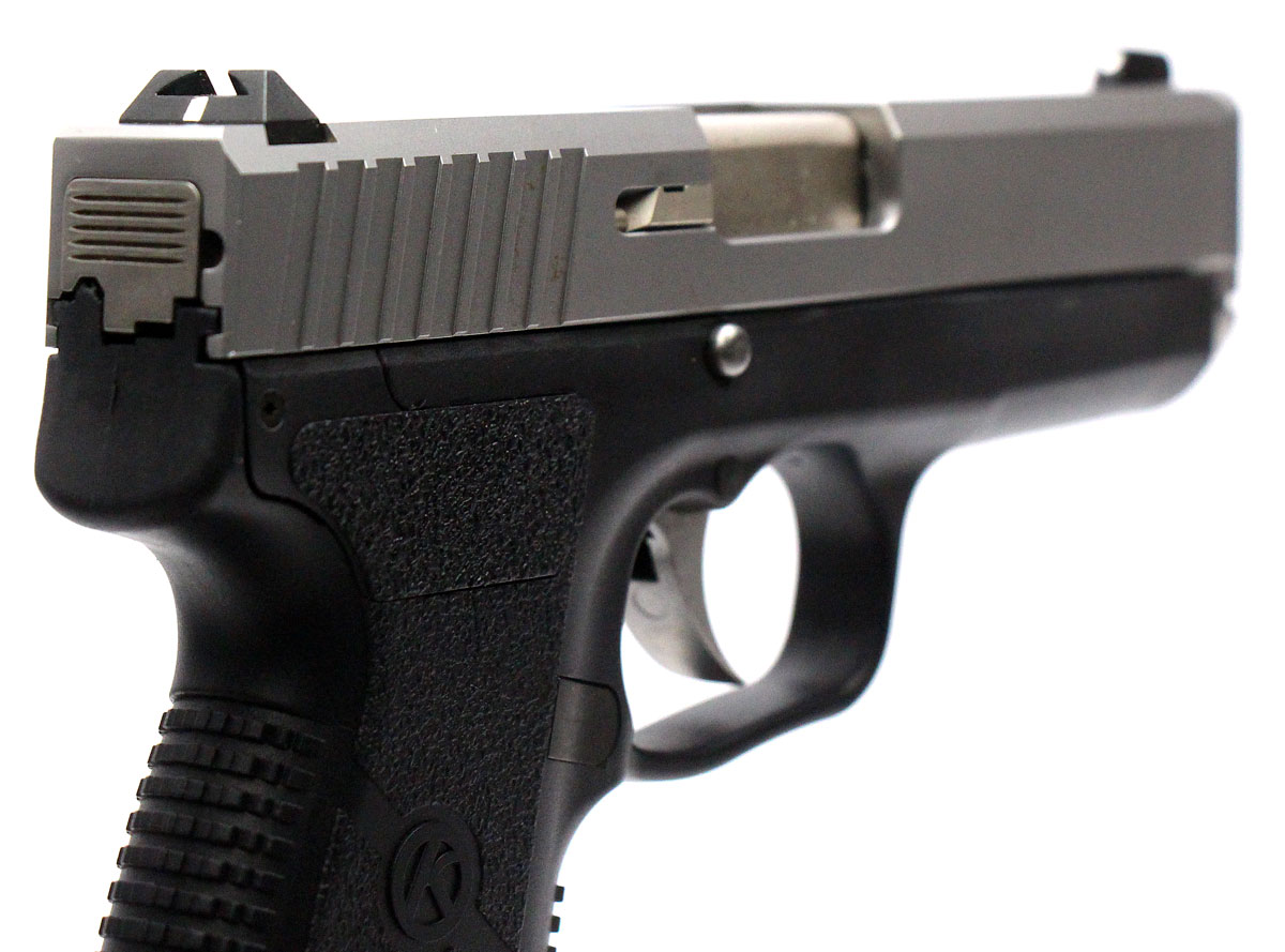 This is a used Kahr CT9 pistol chambered in 9mm. It features a 4-inch barrel, 8-round magazine, contrast sights, and stainless slide. Includes factory box. Overall, this Kahr is in good condition with normal wear on the slide and barrel. This would be a good choice for concealed carry. Buy online today!