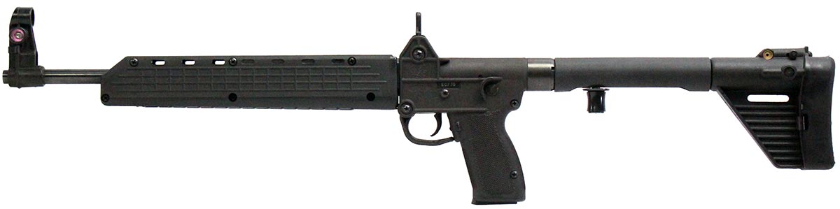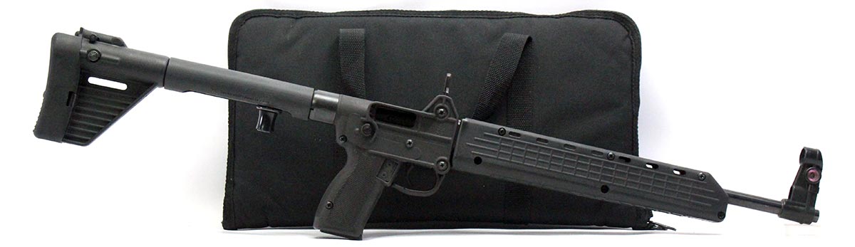 This is a used Kel-Tec Sub 2000 Gen1 carbine chambered in 9mm. It features a 16-inch barrel, 15-round Smith & Wesson 5900 series pattern magazines, hooded front sight, and folding mechanism. Overall, this Kel-Tec is in good condition with normal use wear on the receiver. Include nylon case, manual, three 15-round magazines, and one 10-round magazine. This would be a good choice for recreational target shooting. Buy online today!