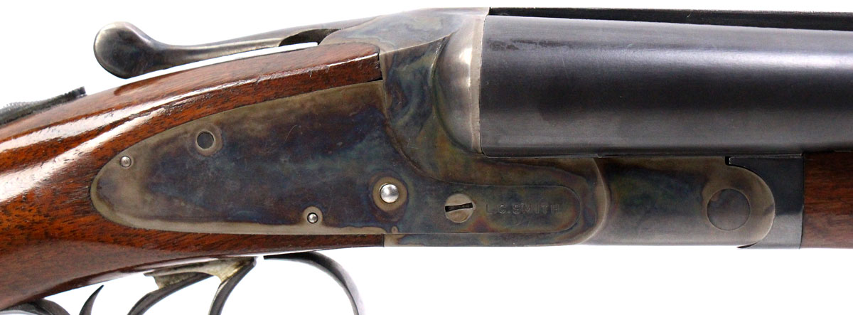This is a classic L.C Smith Field Grade shotgun chambered in 12 gauge. It features 28-inch barrels, 2.75-inch chambers, automatic safety, extractors, fixed modified choke, fixed full choke, and and case hardened receiver. Includes a set of 26-inch barrels (serial number matches to the gun) chambered for 12 gauge with 2.75-inch chambers with fixed modified choke, and fixed cylinder bore choke. Overall, this shotgun is in good condition with some handling wear on the stock and barrels. Based on serial range, this shotgun was manufactured in 1941. This would be a good choice for hunting or for classic shotgun collectors. Buy online today!