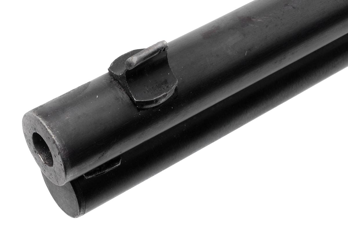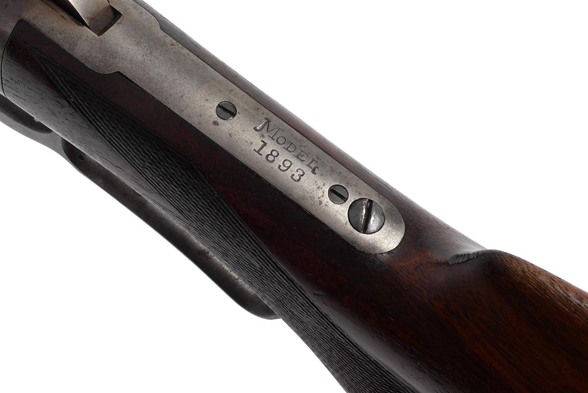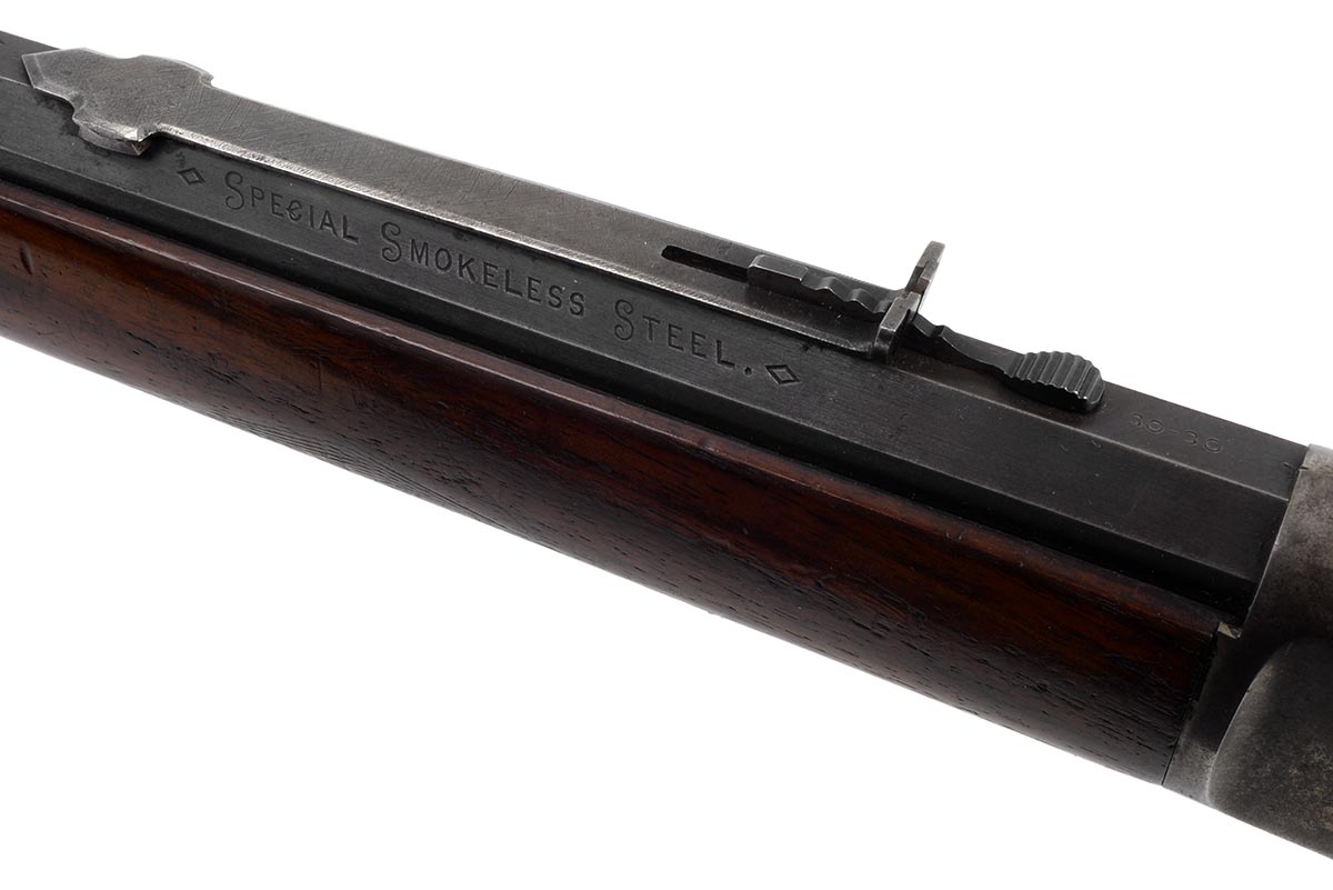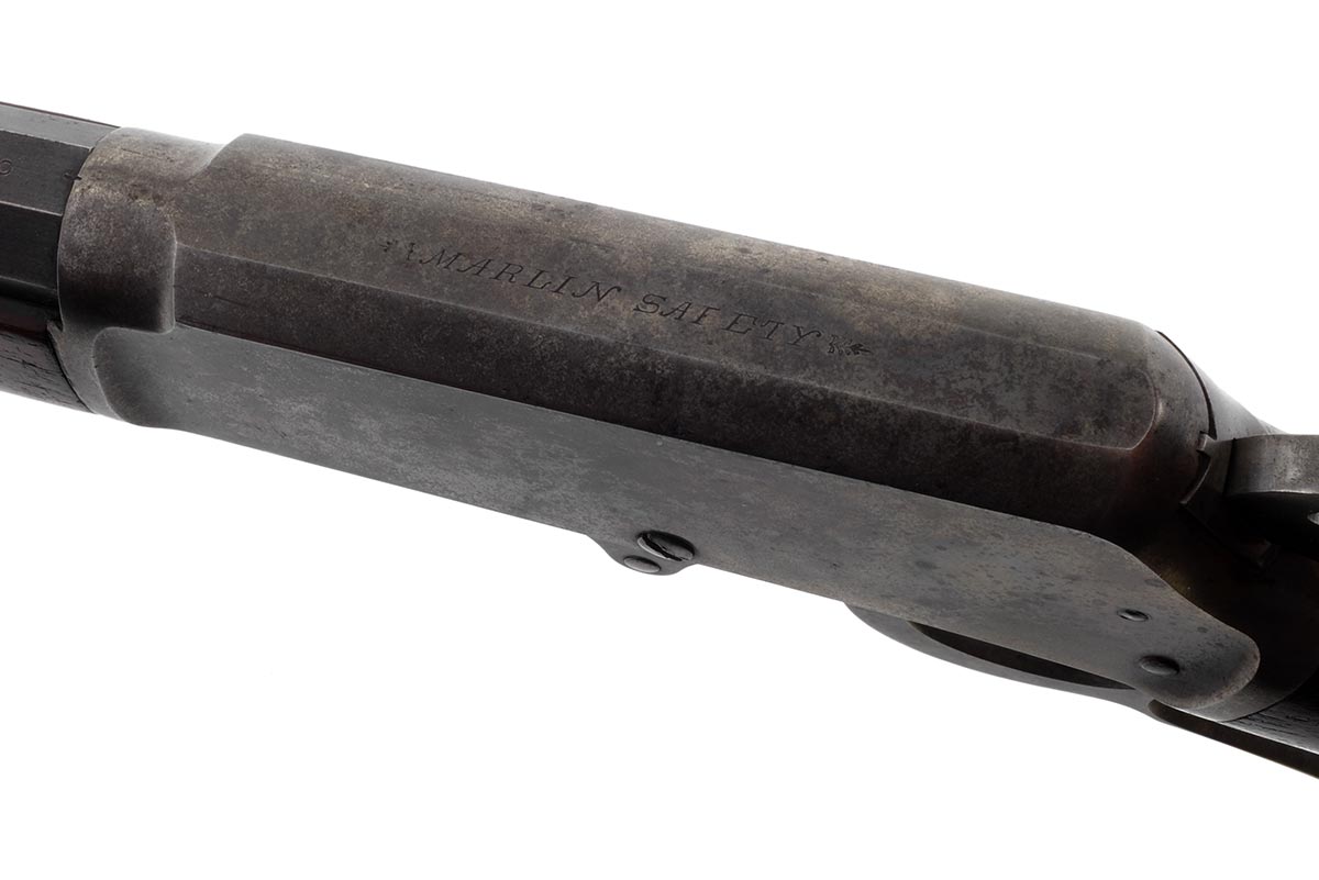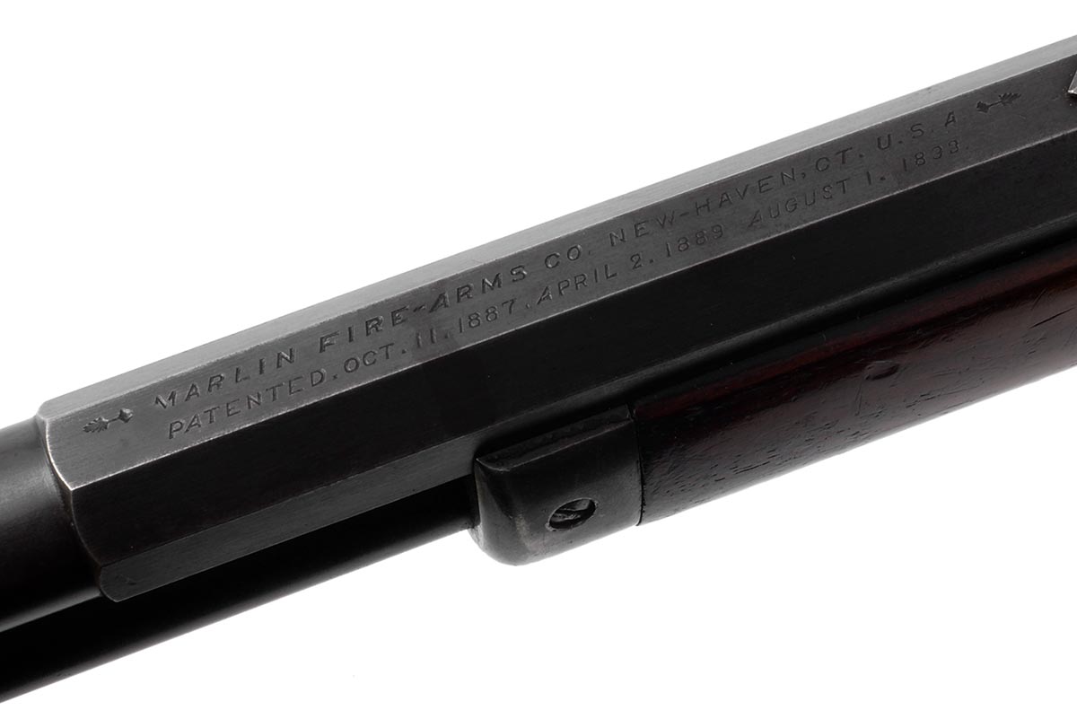 This is an antique Marlin Model 1893 Deluxe rifle chambered in 30-30 Winchester. It features a 26-inch half round/half octagon barrel, Marble front sight, checkered walnut stock, and 10-round magazine tube. The serial number indicates it manufactured in 1898. The barrel and magazine tube retain much of the original bluing with some minor wear and light patina. The receiver, bolt and lever are mostly in the white, but there is still some faint traces of case-coloring remaining. The wood is in nice shape, but the checkering is worn and there are some scuffs, dings and pressure marks. The buttplate is in great shape. The bore is in decent condition with a dull shine and clear rifling, but there is some frosting throughout. This would make a nice addition to a vintage Marlin collection. Buy online today!