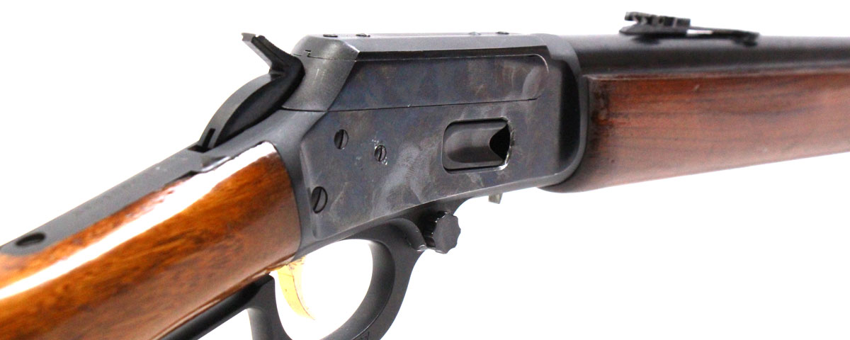 This is a used Marlin 1894 rifle chambered in 44 Magnum. It features a 20-inch barrel with micro groove rifling, 10-round magazine tube, dovetail front sight, adjustable rear sight, drilled and tapped receiver, Ranger Precision lever assembly, walnut furniture, and blued finish. Overall, this Marlin is in good condition with significant handling wear on the receiver, stock and magazine tube. Bore condition is good with crisp rifling. Based on serial range, this Marlin was manufactured in 1977. This would be a good choice for hunting. Buy online today!