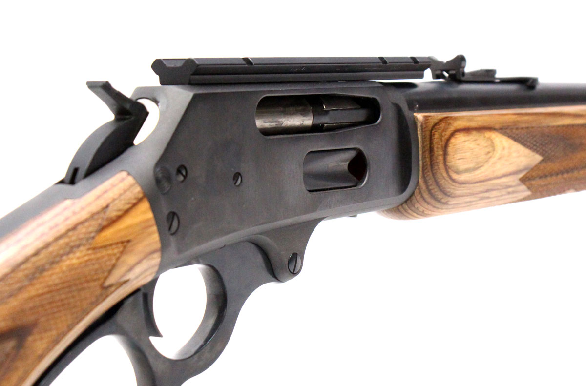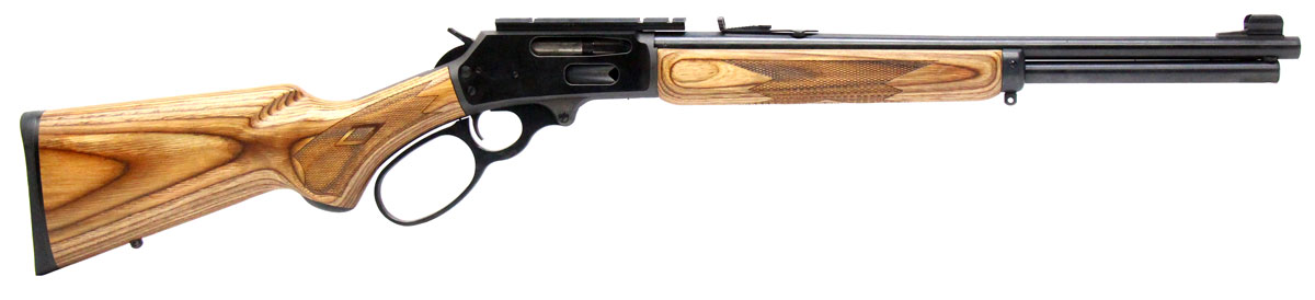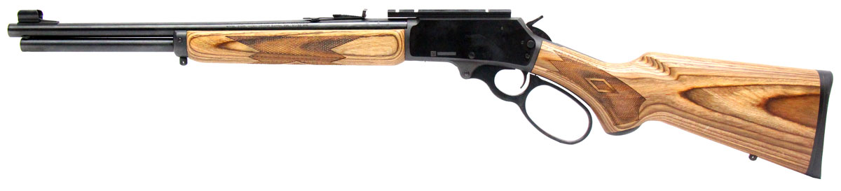 This is a used Marlin 336BL rifle chambered in 30-30 Winchester. It features an 18.5-inch barrel, cross-bolt safety, scope base, semi-buckhorn rear sight, hooded front sight, large loop lever, hammer spur, sling studs, blued finish, and laminate wood furniture. Overall, this Marlin is in good condition with some handling wear on the stock. Bore condition is good with crisp rifling. This would be a good choice for hunting. Buy online today!
