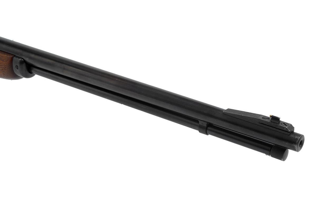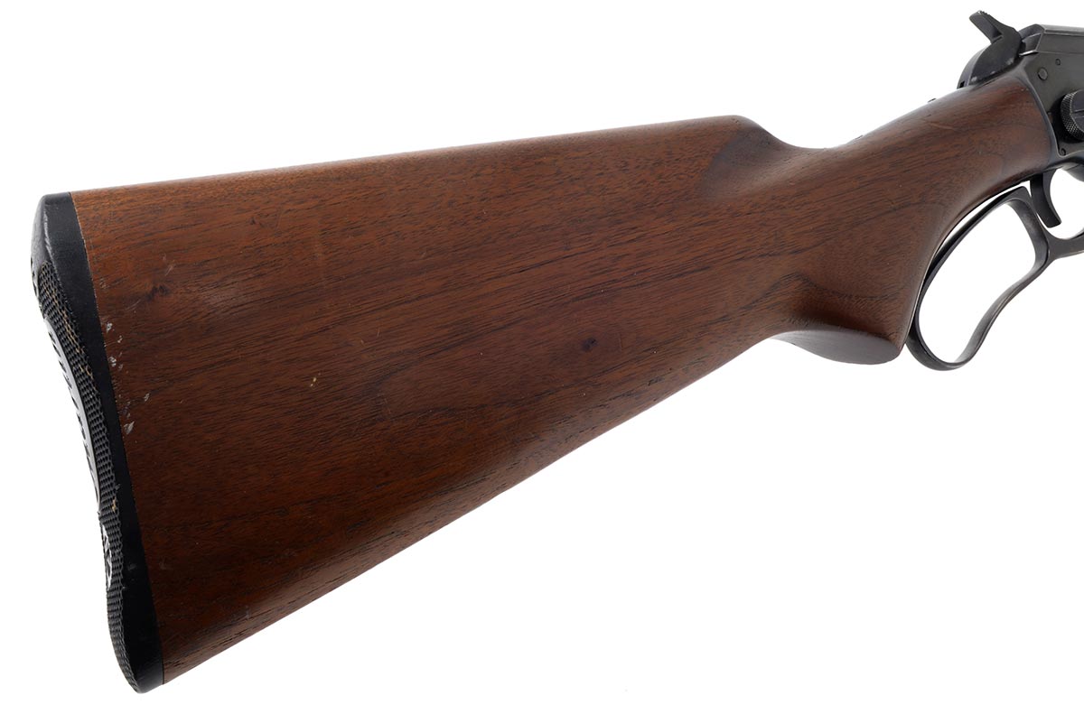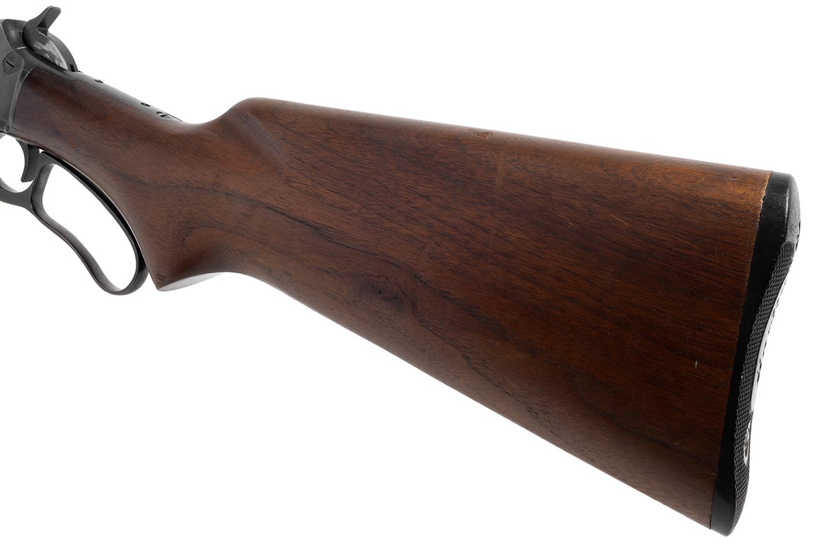 This is a Marlin Model 39A rifle chambered in 22 Long Rifle. It features a 24-inch barrel with "JM" stamp, blued finish, and it was manufactured in 1950. Overall condition is good with a very nice bore and minimal wear to the bluing. The wood is in very nice shape with a few scuffs, dings, and pressure marks. The bullseye is missing from the bottom of the buttstock. This would be a great choice for anyone who collects Marlin rifles or for small game or target shooting. Buy online today!