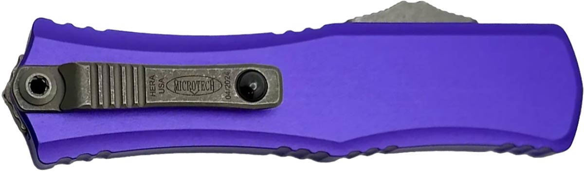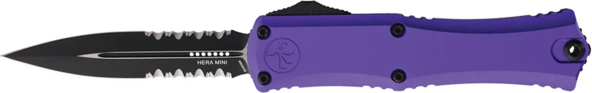 Microtech Hera II Mini D/E Apocalyptic Black Partially Serrated OTF Knife - Purple