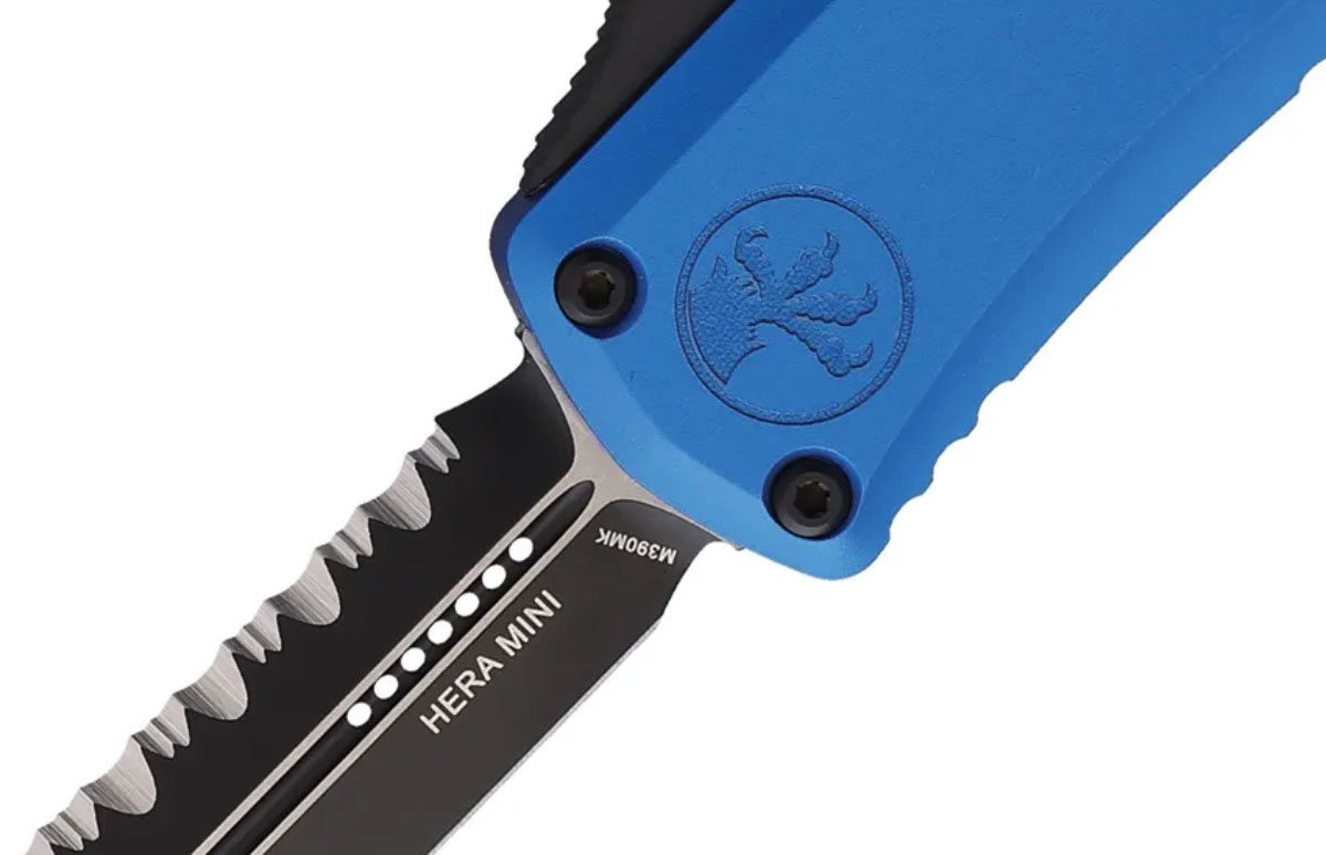 Microtech Hera II Mini D/E Standard Serrated OTF Knife - Blue/Black