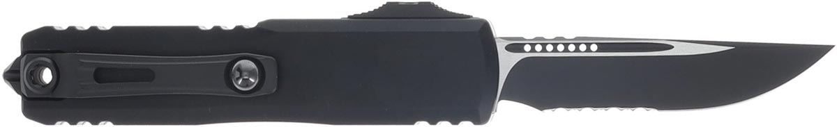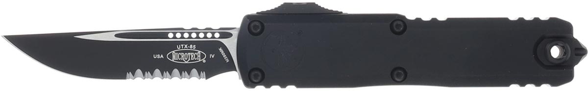 Microtech UTX-85 GEN IV S/E Tactical Partially Serrated OTF Knife Stonewash - Black