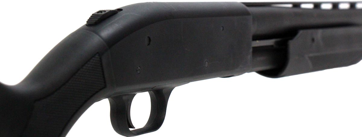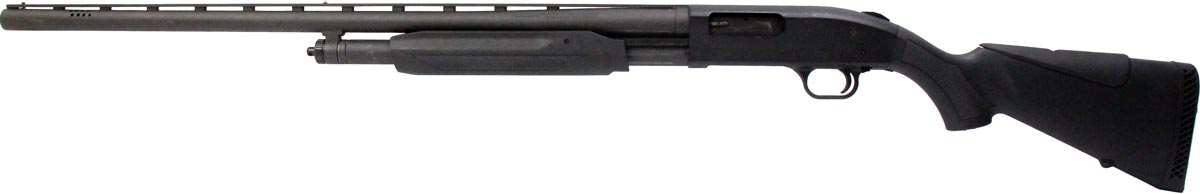 This is a used left-handed Mossberg 500 shotgun chambered in 12 gauge. It features a ported 28-inch barrel, 3-inch chamber, 14.25-inch length of pull, screw-in improved cylinder bore choke, tang safety, and polymer furniture. Overall, this shotgun is in good condition with some handling wear on the receiver and stock. This would be a good choice for hunting. Buy online today!