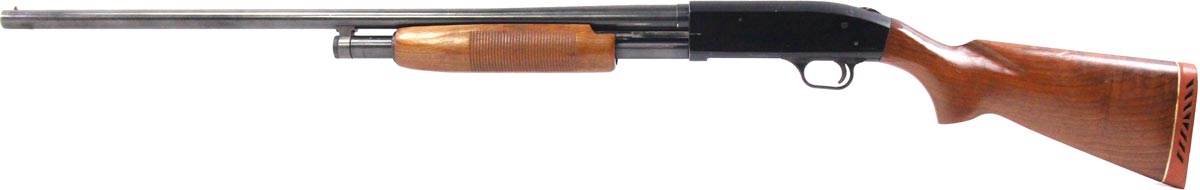 This is a used Mossberg 500A shotgun chambered in 12 gauge. It features an 30-inch barrel, 3-inch chamber, 14-inch length of pull, tang safety, fixed full choke, wood stock, and blued finish. Overall, this Mossberg is in good condition with some handling wear on the stock and bluing wear on the barrel. This would be a good choice for hunting. Buy online today!