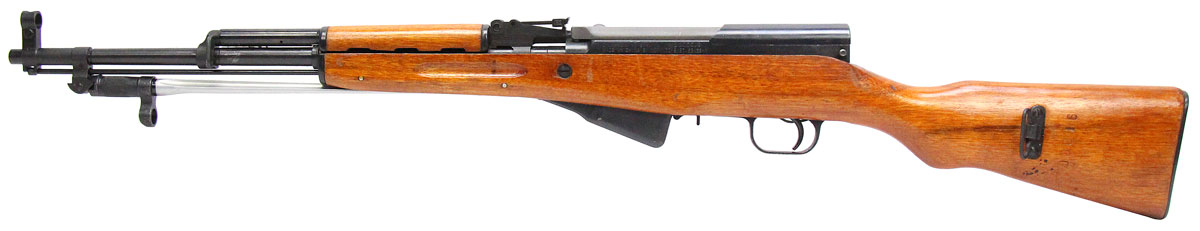 This is a used Norinco SKS rifle chambered in 7.62x39. It features a 20-inch barrel, 10-round hinged floorplate magazine, hooded front sight, tangent rear sight, folding bayonet, and wood stock. Overall, this SKS is in good condition with handling wear on the stock. All serial numbers match and the receiver is import marked. The dust cover pin has been replaced with an aftermarket screw. This would be a good choice for military surplus collecting. Buy online today!