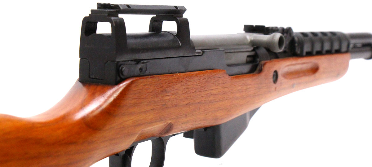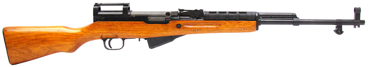 This is a used Norinco SKS rifle chambered in 7.62x39. It features a 20-inch barrel, 10-round hinged floorplate magazine, scope rail, hooded front sight, tangent rear sight, and wood stock. Overall, this SKS is in good condition with handling wear on the stock. Bore condition is good with strong rifling. The bayonet and cleaning rod are missing. This would be a good choice for military surplus collecting. Buy online today!