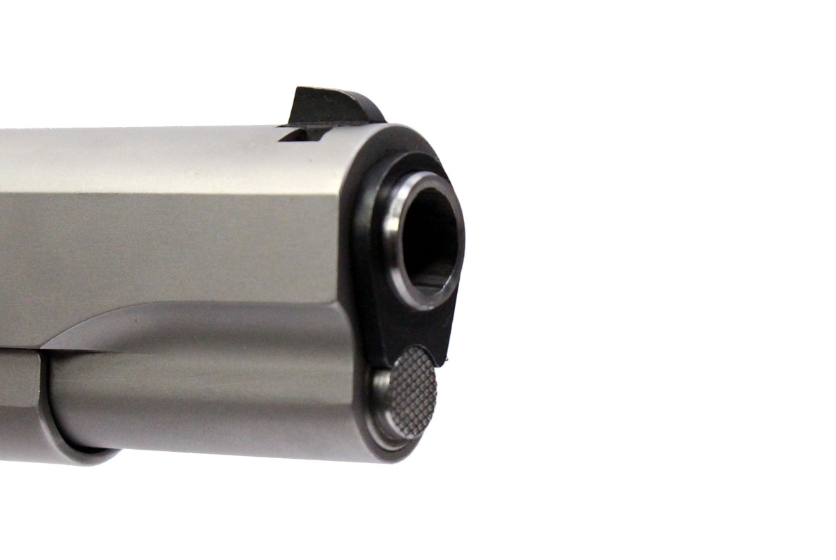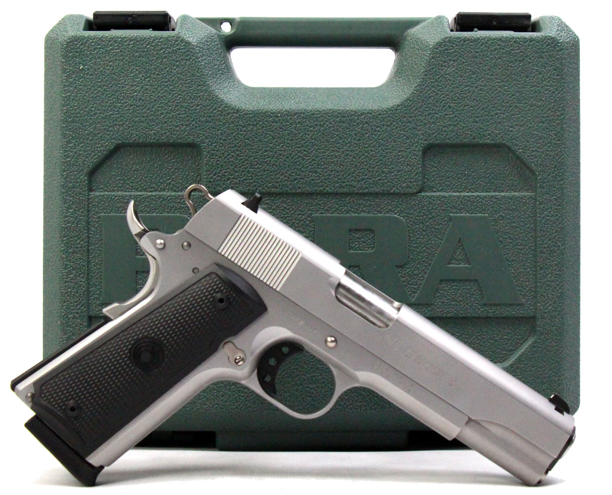 This is a used Para Ordnance 1911 Expert pistol chambered in 45 ACP. It features a 5-inch barrel, 8-round magazines, fixed sights, thumb safety, grip safety, stainless finish, and polymer grips. Includes factory box, instruction manual, two magazines, and bushing wrench. Overall, this pistol is in good condition with normal use wear on the barrel and slide. This would be a good choice for home defense. Buy online today!