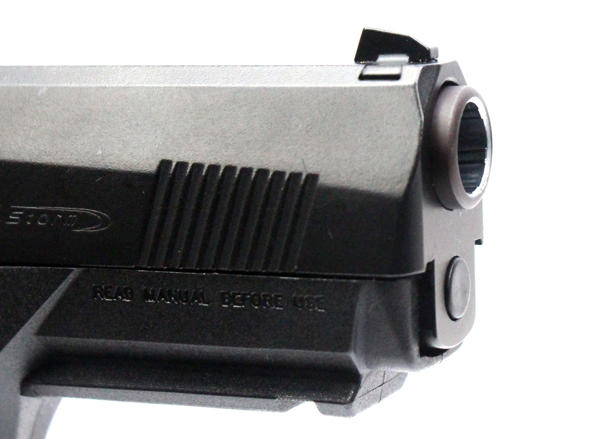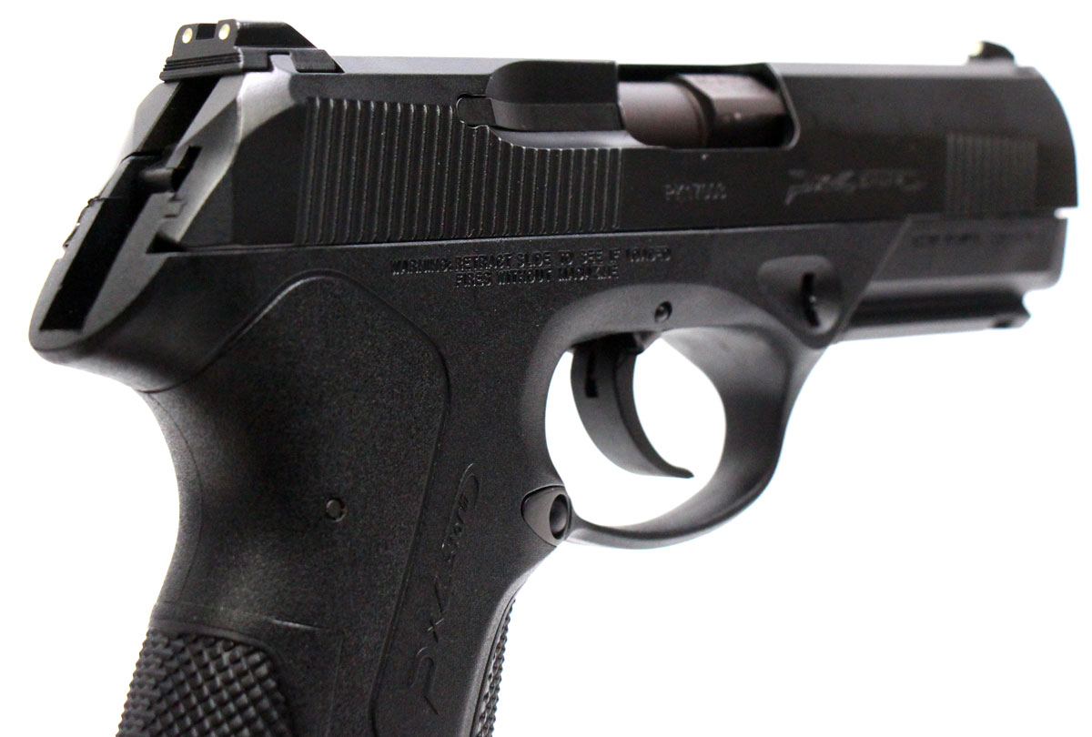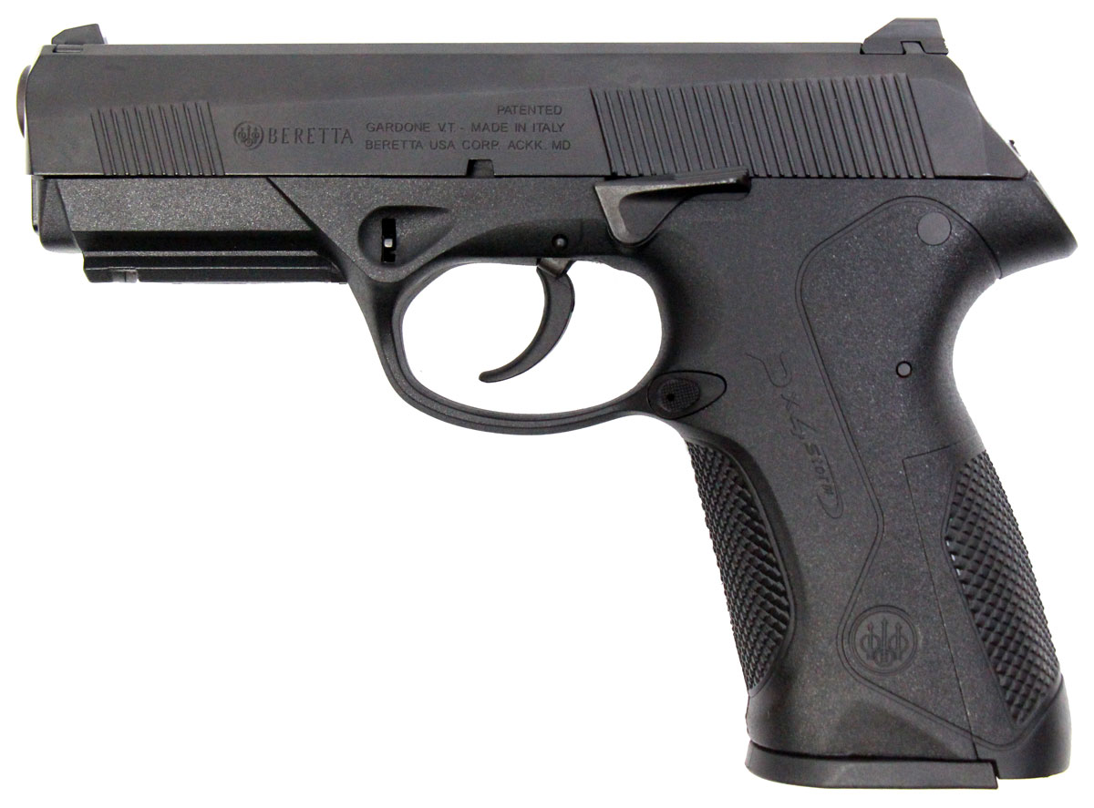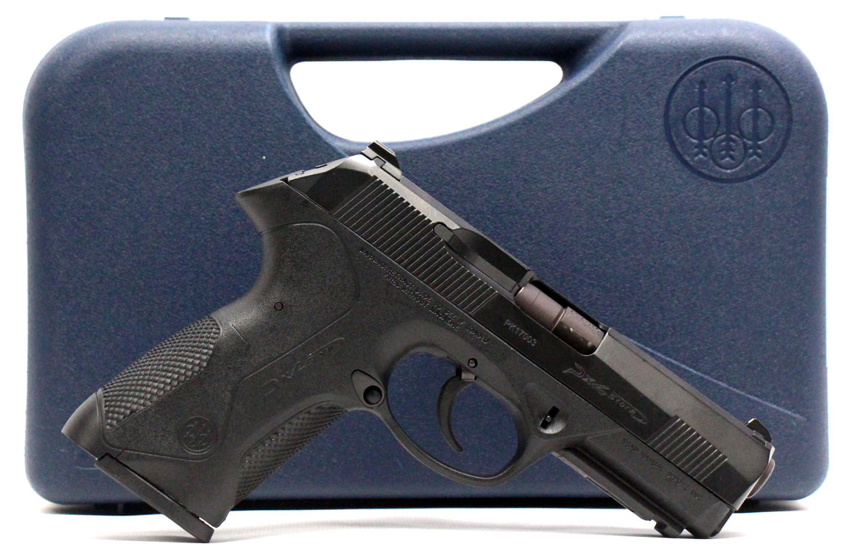 This is a used Beretta PX4 Storm pistol chambered in 45 ACP. It features a 4.13-inch barrel, 9-round magazine, fixed sights, and accessory rail. Includes factory box, manual, two backstraps, one 9-round magazine, and two 10-round magazines. Overall, this pistol is in good condition with normal use wear on the slide and barrel. This would be a good choice for home defense. Buy online today!