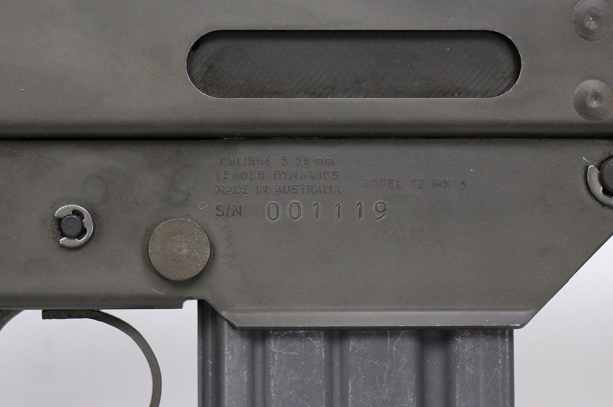 This is a used Leader Dynamics T2 MK5 rifle chambered in 5.56 NATO. It features a 16-inch barrel, 20-round magazine, non-reciprocating charging handle, rear aperture sight, wing protected front sight, fixed stock, and stamped steel receiver. Overall, this rifle is in good condition with some handling wear on the barrel and stock. Bore condition is good with crisp rifling. The receiver has World Public Safety import marks from Culver City, California. It is estimated less than 2,000 of these rifles were imported into the United States from Australia. This would be a good choice for collecting. Buy online today!