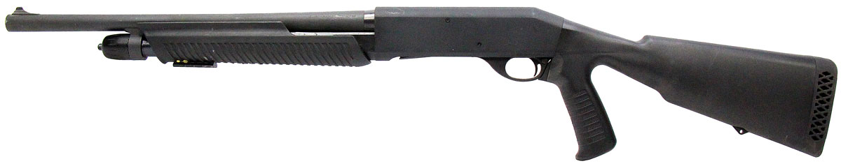 This is a used Stoeger P350 shotgun chambered in 12 gauge. It features an 18.5-inch barrel, 3.5-inch chamber, fixed cylinder bore choke, cross-bolt safety, and pistol grip stock. Overall, this shotgun is in good condition with normal use wear on the magazine tube and handling wear throughout the stock. This would be a good choice for home defense. Buy online today!