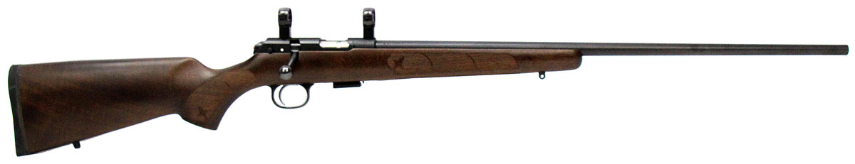 This is a used CZ 457 American rifle chambered in 22 Long Rifle. It features a 24.8-inch barrel, 5-round magazine, 1-inch scope rings, blued finish, Turkish walnut stock, and adjustable trigger. Overall, this rifle is in good condition with some handling wear on the barrel. Bore condition is good with crisp rifling. This would be a good choice for small game hunting. Buy online today!