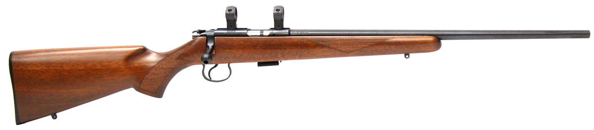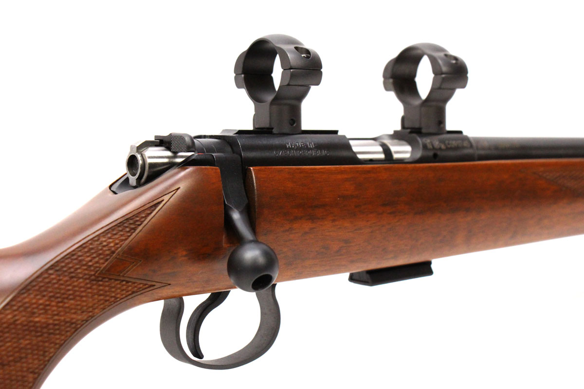 This is a used CZ 455 rifle chambered in 22 Long Rifle. It features a 20-inch barrel, 5-round magazine, 1-inch scope rings, sling studs, blued finish, and wood stock. Overall, this rifle is in good condition with some handling wear on the barrel. Bore condition is good with crisp rifling. This would be a good choice for small game hunting. Buy online today!