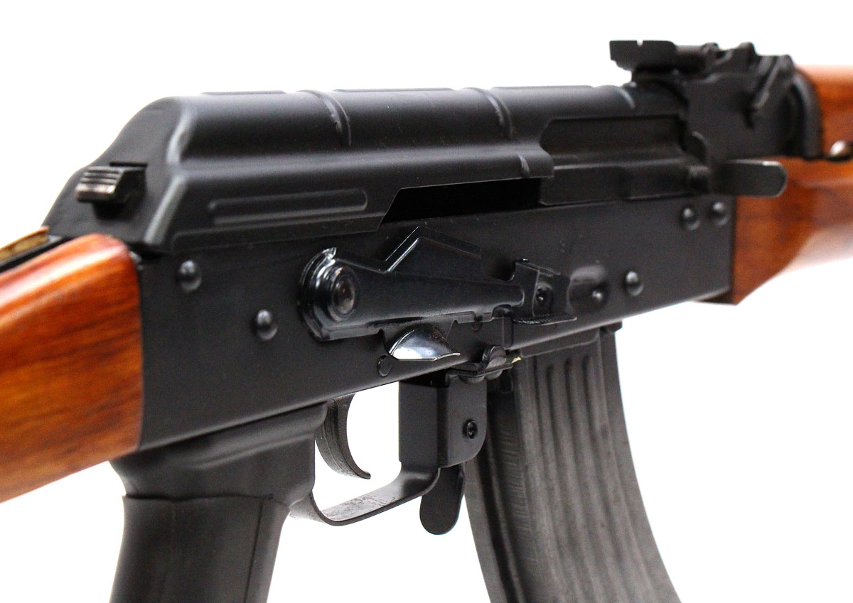 This is a used Riley Defense RAK47 AK-47 rifle chambered in 7.63X39. It features a 16.25-inch barrel, 30-round magazine, sling loops, adjustable rear sight, slant muzzle brake, wood furniture, polymer grip with rubber grip sleeve, and side scope rail. Overall, this rifle is in good condition with normal wear on the receiver. The gas tube has some surface corrosion. Bore condition is good with crisp rifling. This would be a good choice for recreational target shooting or home defense. Buy online today!