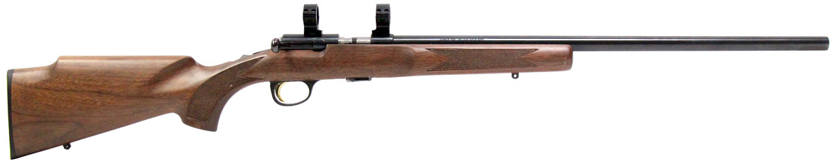 This is a used Browning T-Bolt Sporter rifle chambered in 22 Long Rifle. It features a 22-inch barrel, 10-round magazine, 1-inch scope rings, blued finish, walnut stock, and straight-pull bolt action. Overall, this rifle is in good condition with some handling wear on the stock. Bore condition is good with crisp rifling. Based on Browning's serial lookup, this rifle was manufactured in 2015. This would be a good choice for small game hunting. Buy online today!