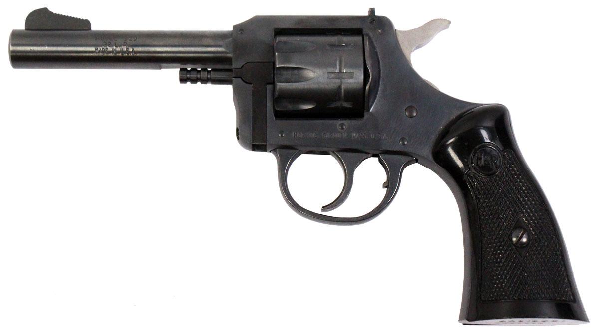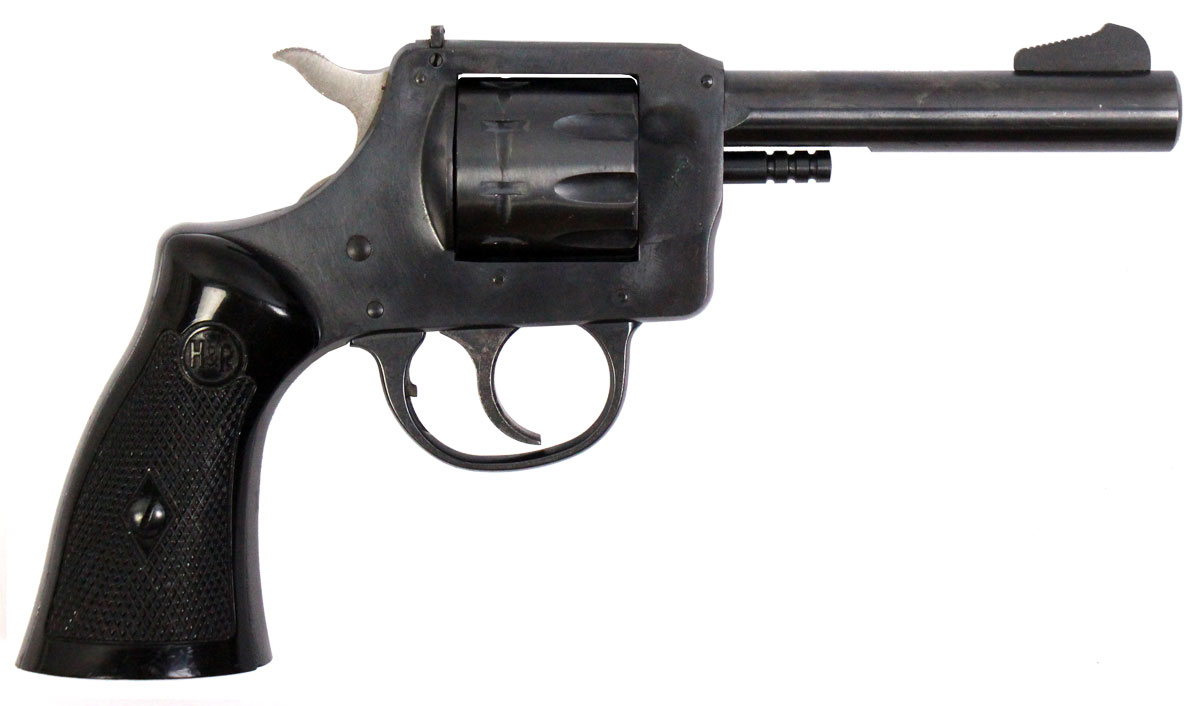 This is a used Harrington & Richardson Model 929 revolver chambered in 22 Long Rifle. It features a 4-inch barrel, 9-round cylinder, fixed sights, blued finish, and plastic grips. Overall, this H&R is in good condition with normal cylinder turn lines. There is an 8-digit number etched into the bottom of the left grip. This would be a good choice for target shooting. Buy online today!