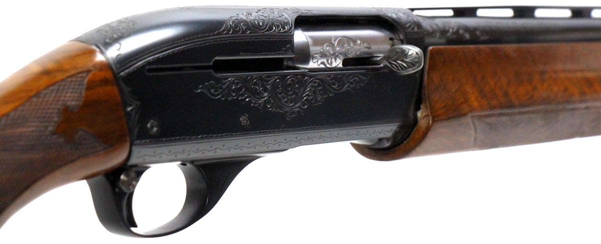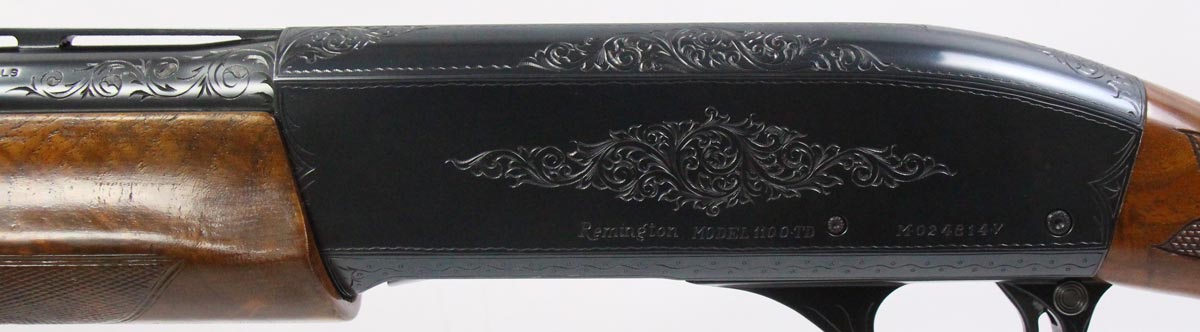 This is a used Remington 1100 TD Tournament Grade D shotgun chambered in 12 gauge. It features a 30-inch vent rib barrel, 2.75-inch chamber, 14.5-inch length of pull, cross-bolt safety, fixed full choke, walnut stock, blued finish, and scroll engraved receiver. Overall, this shotgun is in good condition with some handling wear on the stock. This would be a good choice for trap shooting. Buy online today!