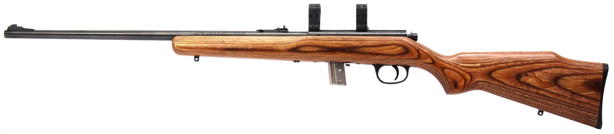 This is a used Marlin 25N rifle chambered in 22 Long Rifle. It features a 22-inch barrel, 7-round magazine, 1-inch rings, laminate wood stock with Ducks Unlimited medallion, and blued finish. Overall, this rifle is in good condition with handling wear on the stock and barrel. Bore condition is good with crisp rifling. This would be a good choice for small game hunting or target shooting. Buy online today!