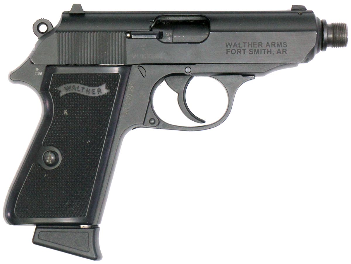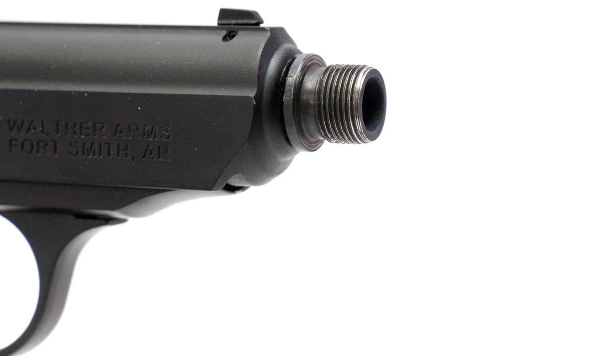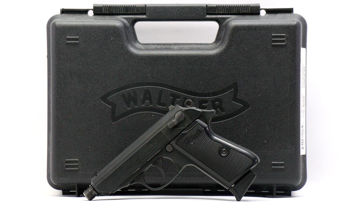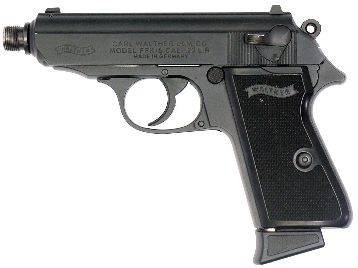 This is a used Walther PPK/S pistol chambered in 22 Long Rifle. It features a 3.75-inch threaded barrel, 10-round magazines, manual safety/decocker, polymer grips, and fixed sights. Overall, this Walther is in good condition with normal use wear on the slide and barrel. The thread protector is missing. Includes factory box and two magazines. This would be a good choice for target shooting. Buy online today!