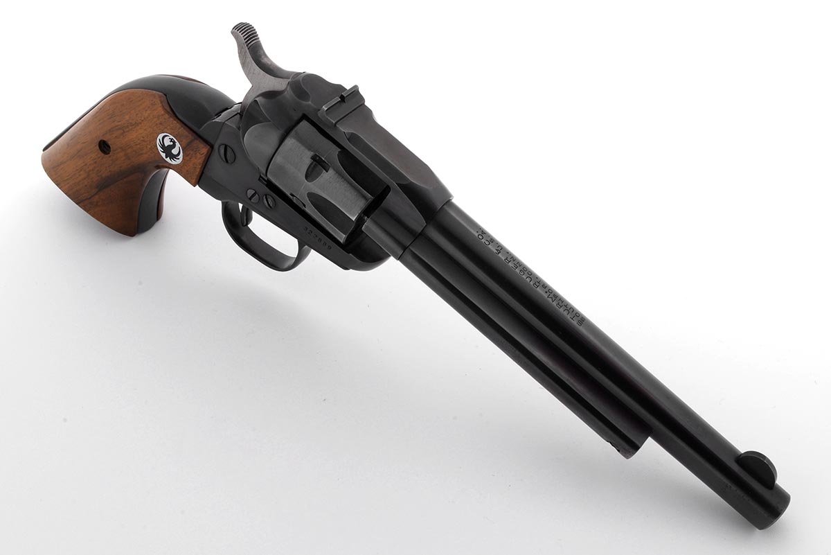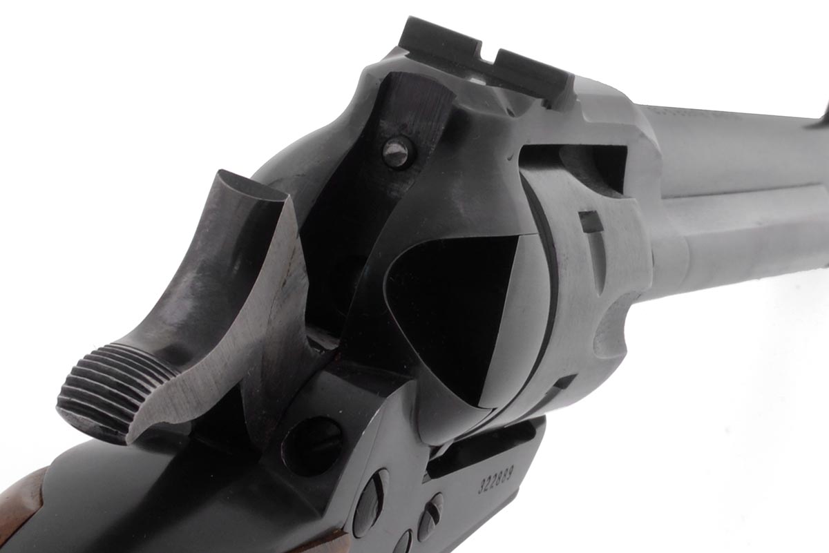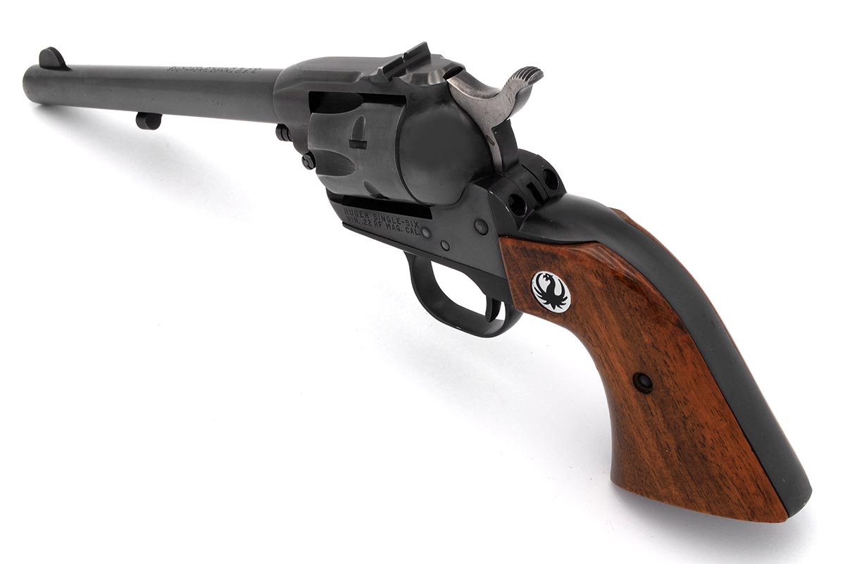 This a Ruger Single-Six single action revolver chambered in 22 Magnum. It features a 6.5-inch barrel, blued finish, wood grips, and no transfer bar safety. The serial number indicates this revolver was manufactured in 1961. This early model also features the 3-screw frame, 4-click hammer, and does not have the warning stamped on the underside of the barrel. Overall condition is good with and excellent bore and barely any wear to the bluing. The cylinder timing is good and the lockup is strong. This would make a great addition to a Ruger handgun collection. Buy online today!