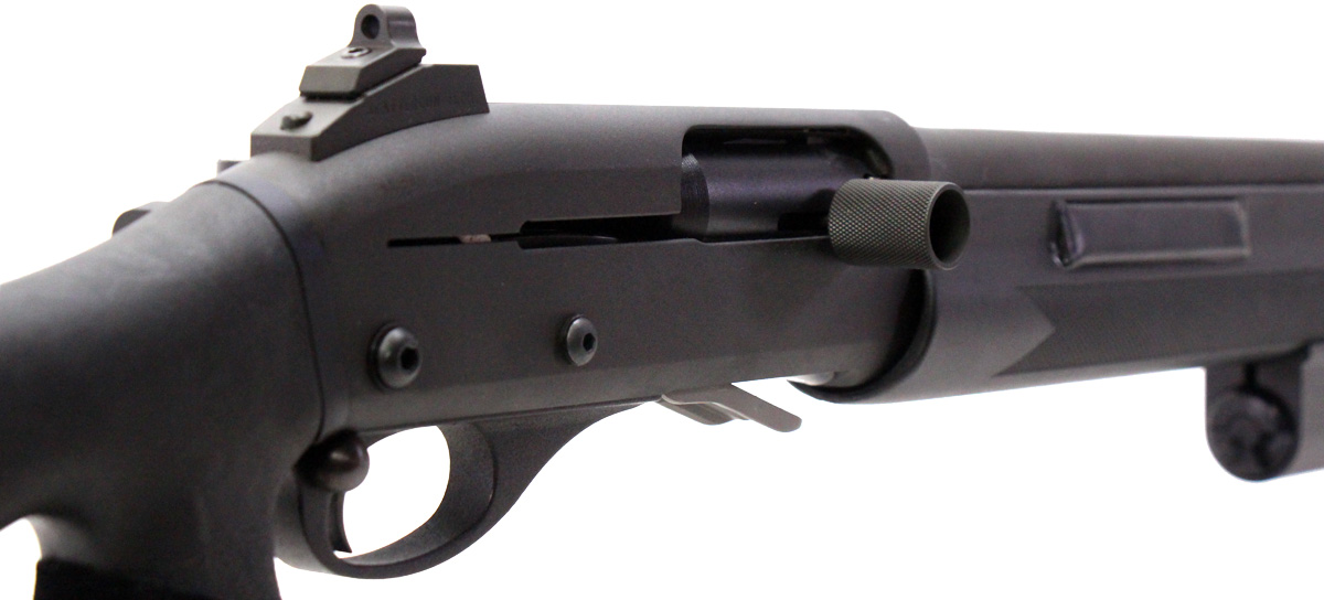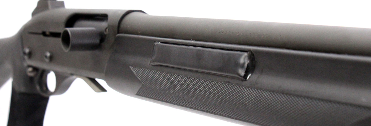 This is a used Remington 11-87 Police shotgun chambered in 12 gauge. It features an 18-inch barrel, 3-inch chamber, ghost ring sights, fixed cylinder bore choke, cross-bolt safety, pistol grip stock, extended magazine tube, extended charging handle, Surefire weapon light, and side saddle. Includes factory box, manual, and OEM polymer forend. Overall, this Remington is in good condition with some handling wear on the barrel and receiver. This would be a good choice for home defense. Buy online today!