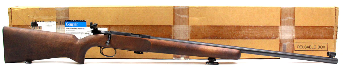 This is a used Remington 541X Target rifle chambered in 22 Long Rifle. It features a 27-inch barrel, 5-round detachable magazine, Williams rear peep sight, globe front sight, sling swivels, and walnut stock. Includes factory box and manual. Overall, this rifle is in very good condition with minimal wear. Bore condition is good with crisp rifling. The receiver has a U.S. stamp on the left side. This would be a great choice for target shooting. Buy online today!