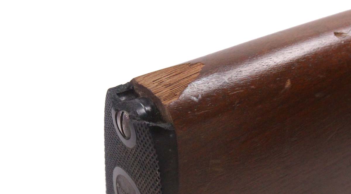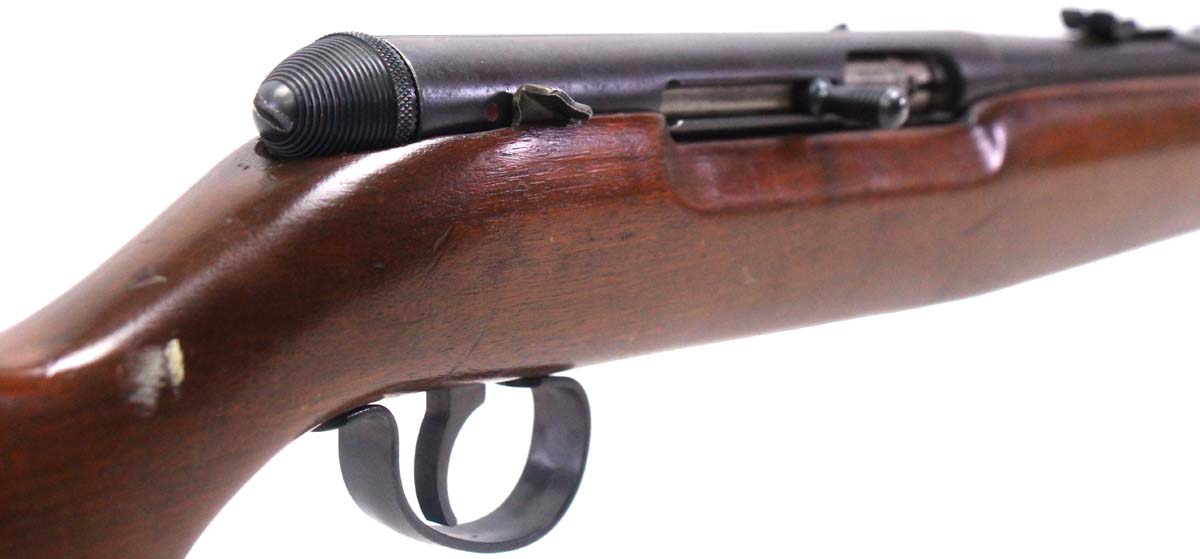 This is a used Remington 550-1 rifle chambered in 22 Long Rifle. It features a 24-inch barrel, 15-round magazine tube, open sights, and wood stock. Overall, this Remington is in fair condition with corrosion on the magazine tube. The stock and buttplate are chipped. Bore condition is good with strong rifling. This gun is being sold as-is.