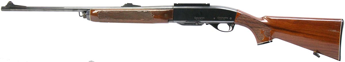 This is a used Remington Model 742 Woodsmaster rifle chambered in 30-06 Springfield. It features a 22-inch barrel, 4-round detachable magazine, scope base, cross-bolt safety, walnut stock, and blued finish. Overall, this Remington is in good condition with some handling wear on the barrel, stock, and the receiver. The rear sight is missing. Bore is in good condition with strong rifling. This would be a good choice for big game hunting. Buy online today!