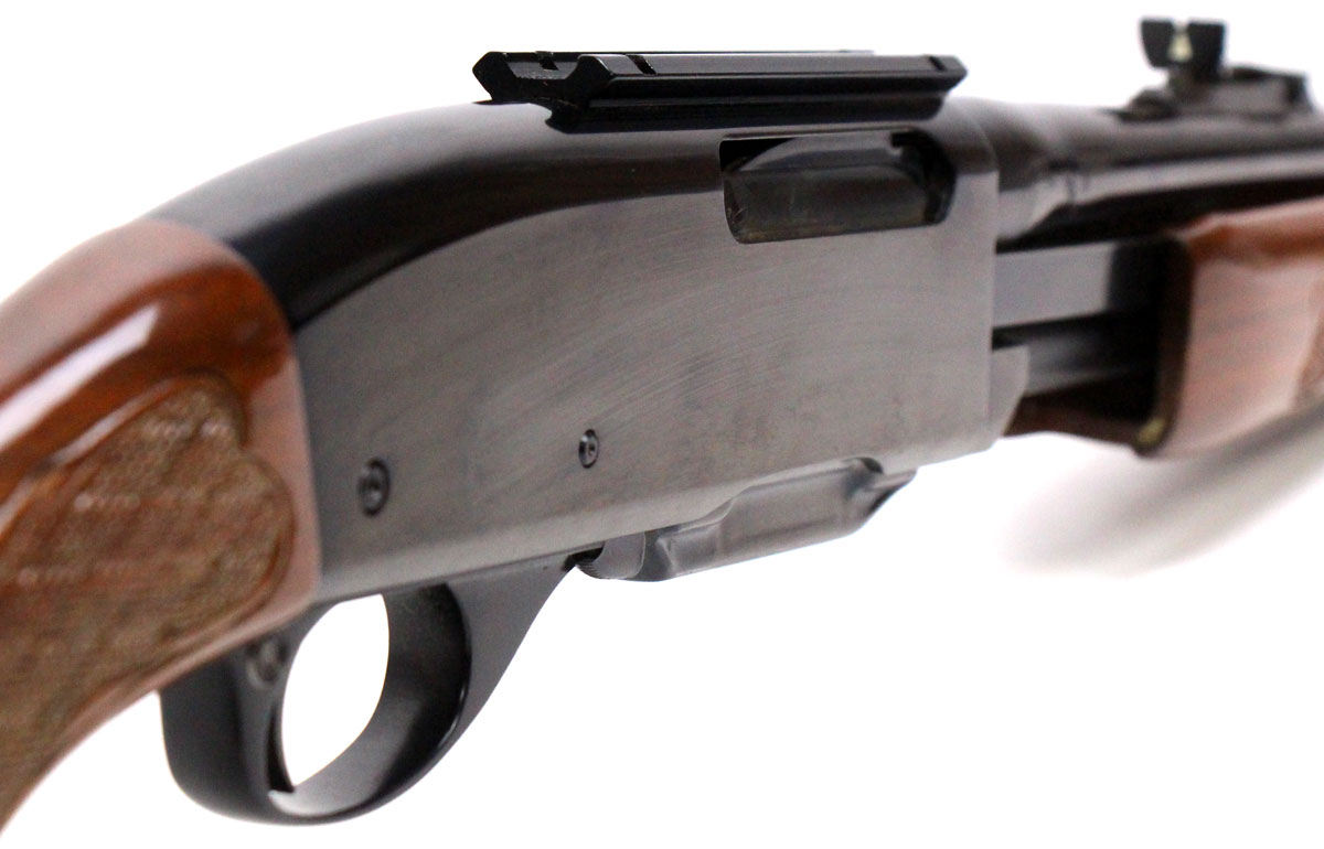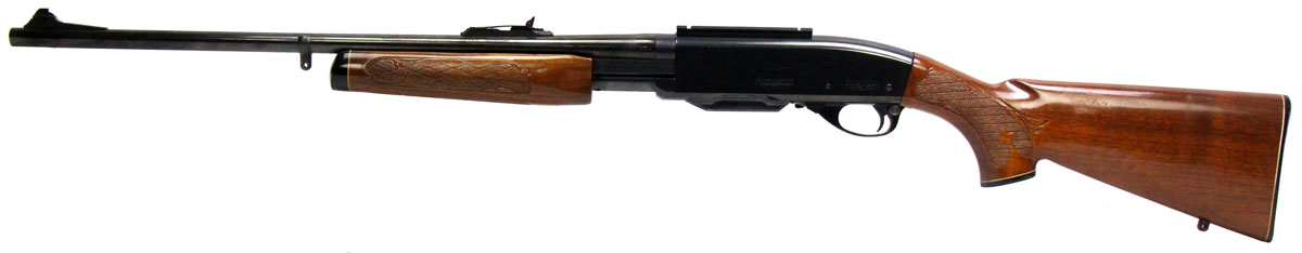 This is a used Remington 760 Gamemaster rifle chambered in 30-06. It features a 22-inch barrel, 4-round detachable magazine, adjustable rear sight, cross-bolt safety, scope base, and blued finish. Overall, this Remington is in good condition with some handling wear on the stock. Bore condition is good with crisp rifling. This would be a good choice for hunting big game. Buy online today!