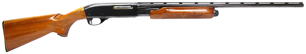 This is a used Remington 870 Wingmaster Lightweight shotgun chambered in 410 Bore. It features a 25-inch vent rib barrel, 3-inch chamber, 14-inch length of pull, cross-bolt safety, fixed full choke, walnut furniture, and blued finish. Overall, this shotgun is in good condition with some handling wear on the stock and receiver. This would be a good choice for hunting small game. Buy online today!