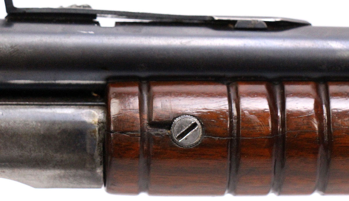 This is a used Remington Model 14 rifle chambered in 35 Remington. It features a 22-inch barrel, 6-round capacity, buckhorn rear sight, and walnut furniture. Overall, this rifle is in good condition with normal age-related bluing wear throughout the barrel, receiver, and magazine tube. The forend has cracks near the screws on both sides. Bore condition is good with well-defined rifling. This would be a good choice for hunting or classic rifle collectors. Buy online today!