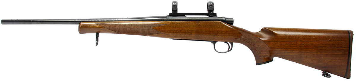This is a used Remington Model Seven rifle chambered in 7mm-08. It features an 18.5-inch barrel, 4-round hinged floorplate magazine, 1-inch scope rings, sling swivels, walnut stock, and blued finish. Overall, this Remington is in good condition with some handling wear on the stock and bottom metal. Bore condition is good with crisp rifling. The barrel has a "WK" code. This would be a good choice for hunting. Buy online today!