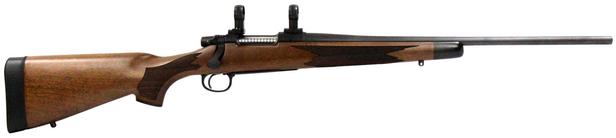 This is a used Remington Model Seven CDL rifle chambered in 7mm-08. It features a 20-inch barrel, 4-round hinged floorplate magazine, 1-inch scope rings, sling studs, walnut stock, and blued finish. Overall, this Remington is in good condition with some handling wear on the stock. Bore condition is good with crisp rifling. The barrel has a "WJ" code. This would be a good choice for hunting. Buy online today!
