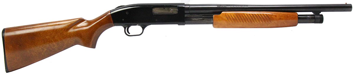 This is a used Revelation Model R310AB shotgun chambered in 12 gauge. It features an 18.5-inch barrel, 3-inch chamber, 14-inch length of pull, tang safety, and fixed cylinder bore choke. Overall, this shotgun is in good condition with some handling wear on the stock and surface corrosion on the magazine tube. This would be a good choice for home defense. Buy online today!