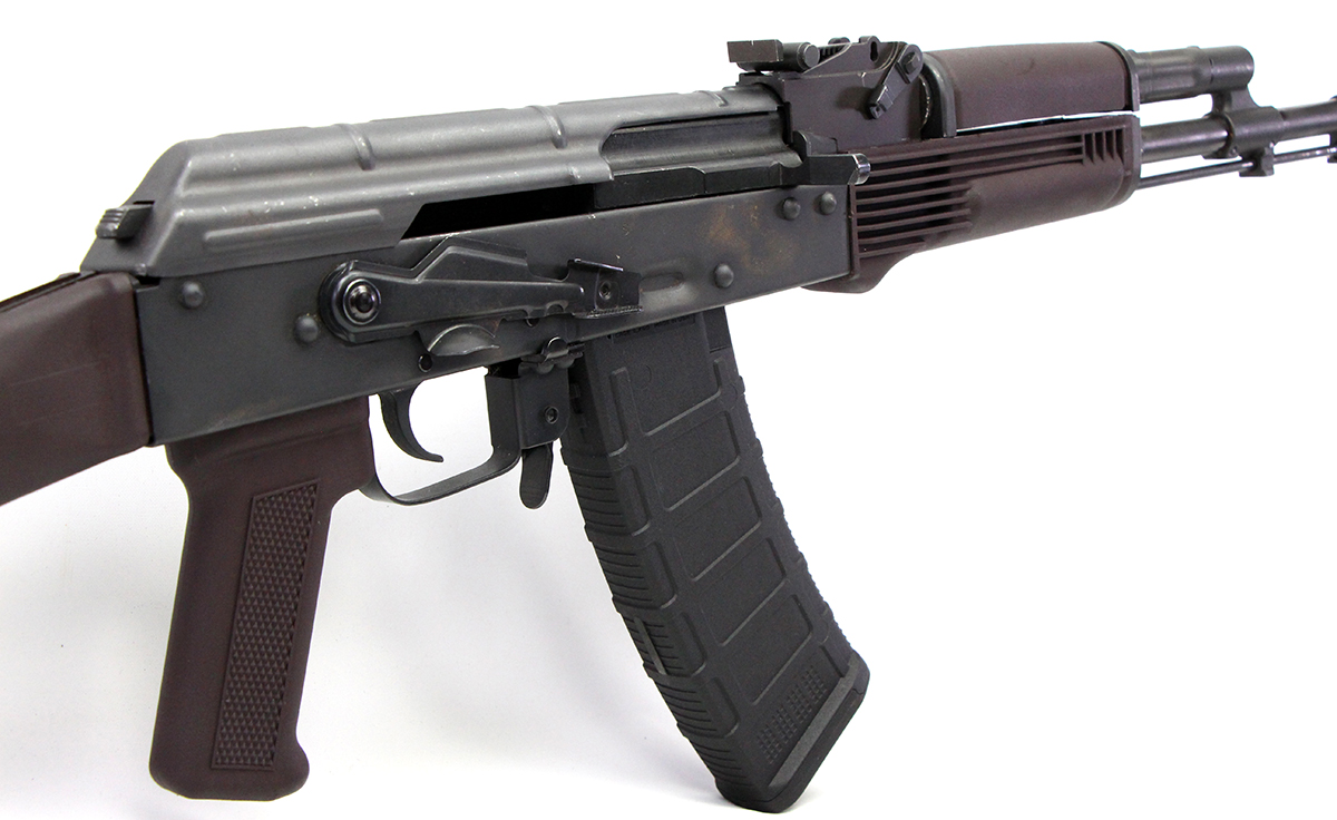 This is a used Riley Defense RAK-74 rifle chambered in 5.45x39. It features a 16.25-inch barrel, 30-round magazine, stamped receiver, side scope rail, bolt hold open safety lever, extended magazine release, and plum polymer furniture. Overall, this Riley Defense is in good condition with normal cosmetic wear on the receiver. This would be a good choice for recreational target shooting. Buy online today!