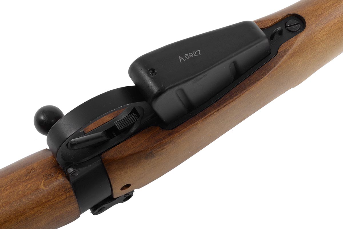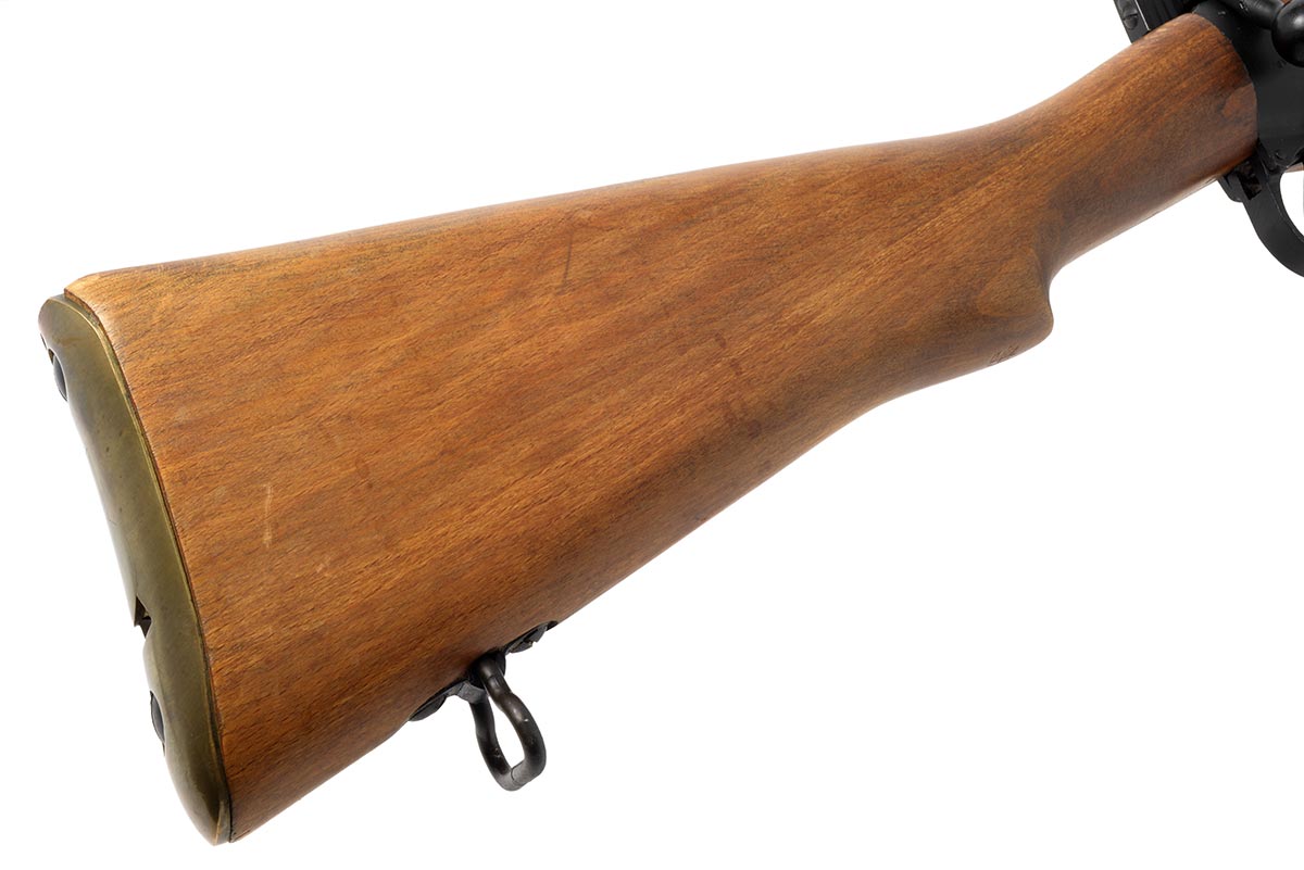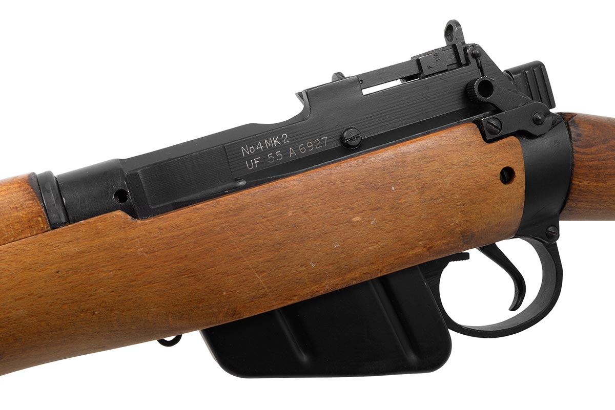 This is an ROF Fazakerley Enfield No4 MK2 RAF contract rifle chambered in .303 British. It features a 25.2-inch barrel, black military finish, wood stock, and all matching numbers. The serial number has a "UF" prefix followed by "55" indicating it was manufactured in 1955 by the Royal Ordnance Factory rifle manufacturing plant in Fazakerley, Liverpool. These rifles were part of an Royal Air Force contract of 35,000 and were immediately placed in long-term storage. They would sit in the British war reserve for 40 years before being sold as surplus to US buyers in the mid-1990s. This example is in very good condition with a bright shiny bore and strong rifling. There is almost no wear to the metal finish and the wood has just a few small nicks and light pressure marks. This would make a great addition to any military surplus collection. Buy online today!