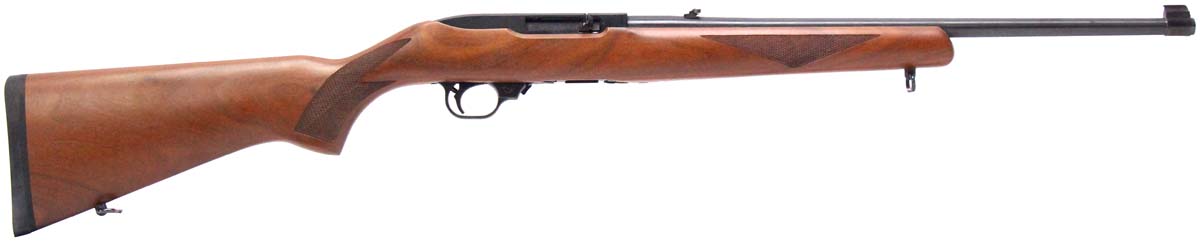 This is a used Ruger 10/22 Sporter rifle chambered in 22 Long Rifle. It features an 18.5-inch barrel, 10-round magazine, open sights, factory drilled and tapped receiver, cross-bolt safety, checkered wood stock, and blued finish. Overall, this Ruger is in good condition with some handling wear on the stock. Bore condition is good with crisp rifling. This would be a good choice for target shooting or small game hunting. Buy online today!