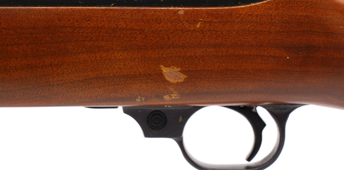 This is a used 25th Year Anniversary Edition Ruger 44 Carbine chambered in 44 Magnum. It features an 18.5-inch barrel, 4-round magazine tube, cross-bolt safety, folding rear sight, brass bead front sight, factory drilled and tapped receiver, blued finish, and walnut stock. Includes factory box. Overall, this Ruger is in good condition with some handling wear on the receiver and stock. Bore condition is good with crisp rifling. This would be a good choice for hunting or collecting. Buy online today!